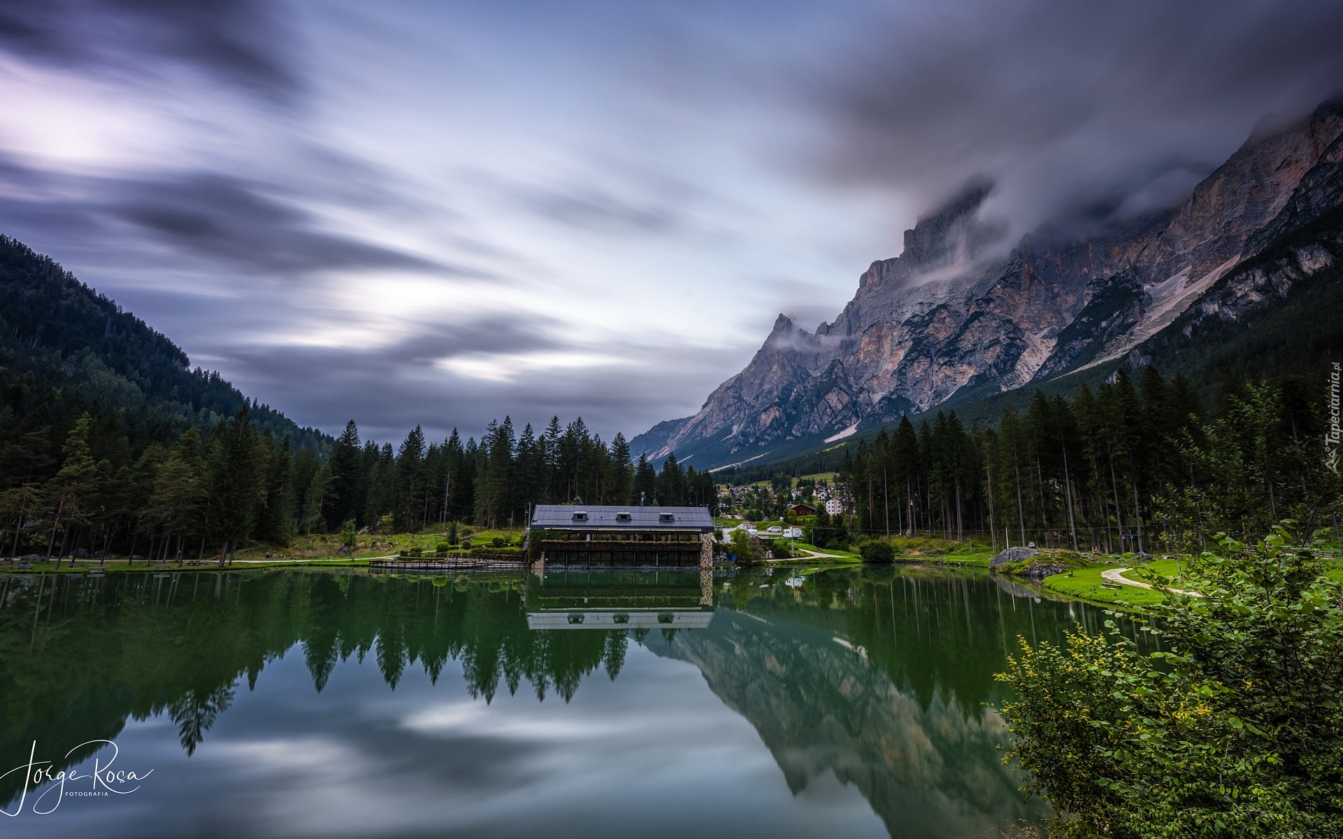 Edytor tapety: Domy i góry nad jeziorem Mosigo w Belluno