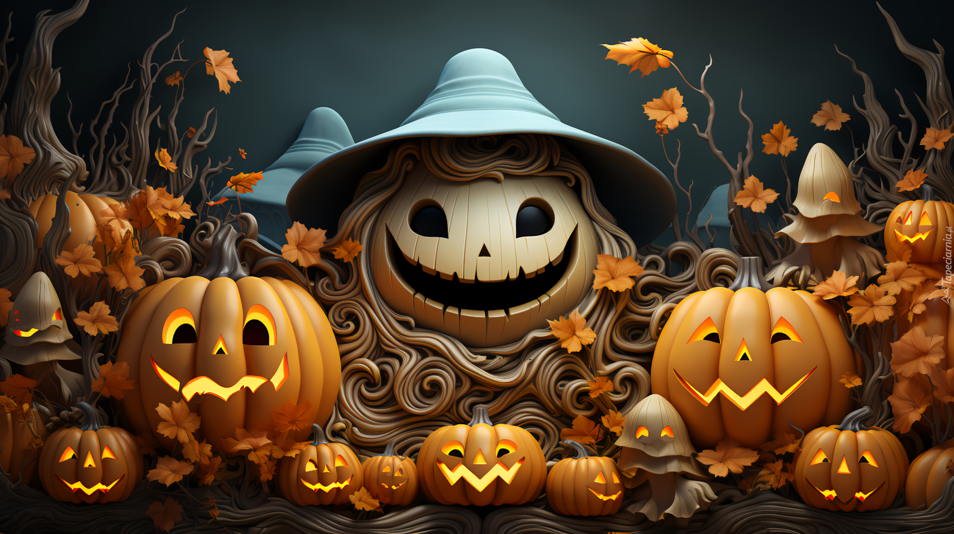 Edytor tapety: Grafika z uśmiechniętymi dyniami na halloween