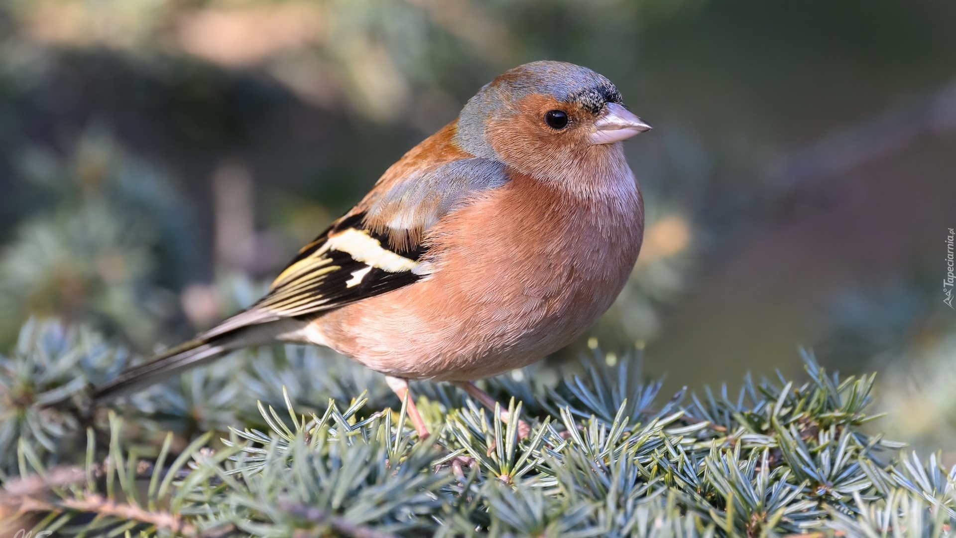 Edytor tapety: Zięba zwyczajna na gałązkach iglaka