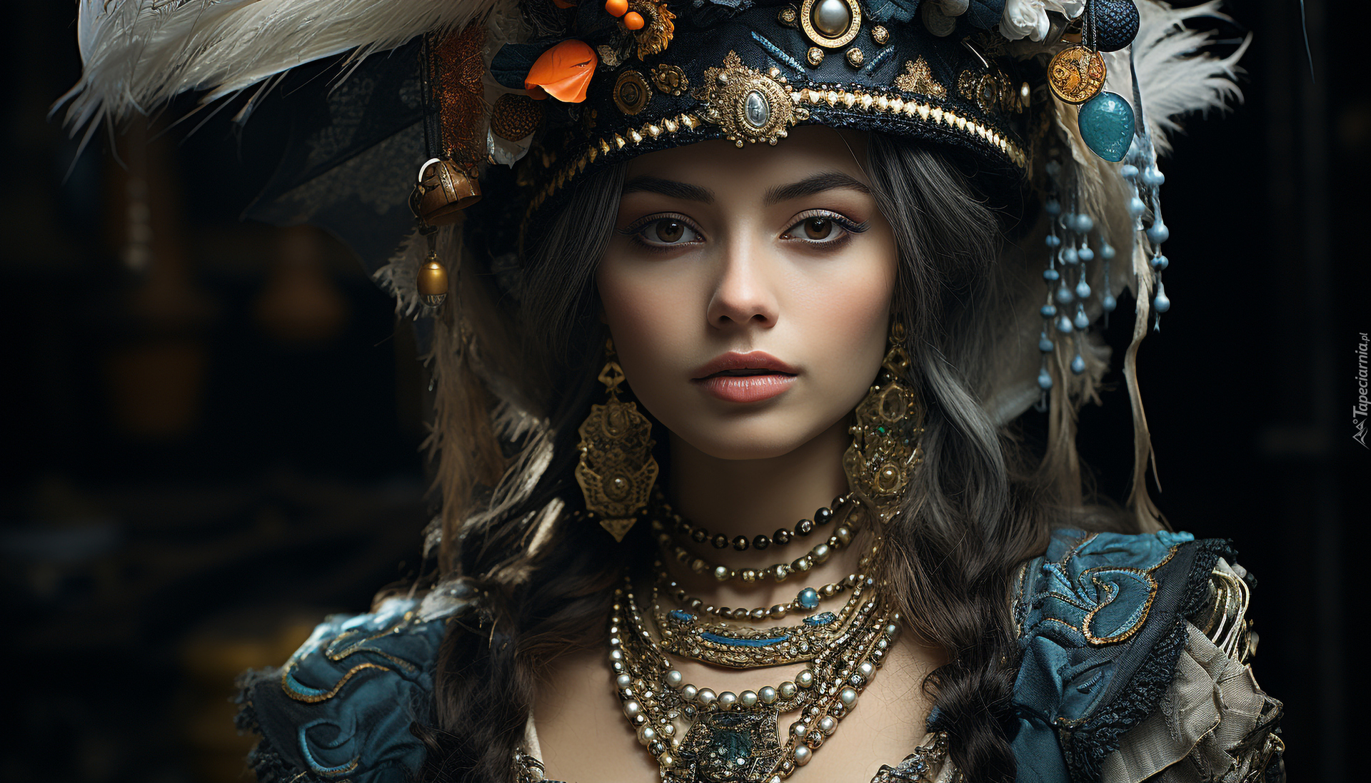 Edytor tapety: Kobieta w biżuterii i w czapce