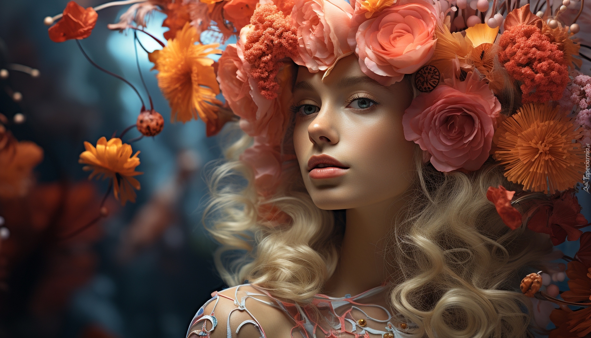 Edytor tapety: Dziewczyna z kwiatami na głowie