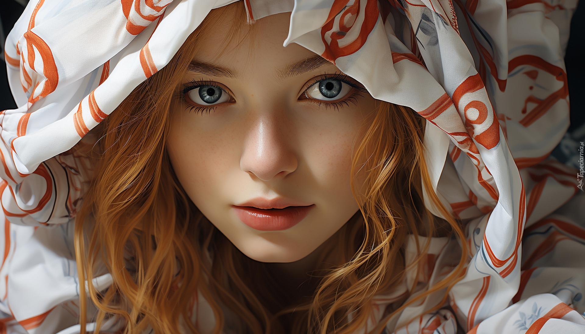 Edytor tapety: Rudowłosa dziewczyna z chustą na głowie w grafice