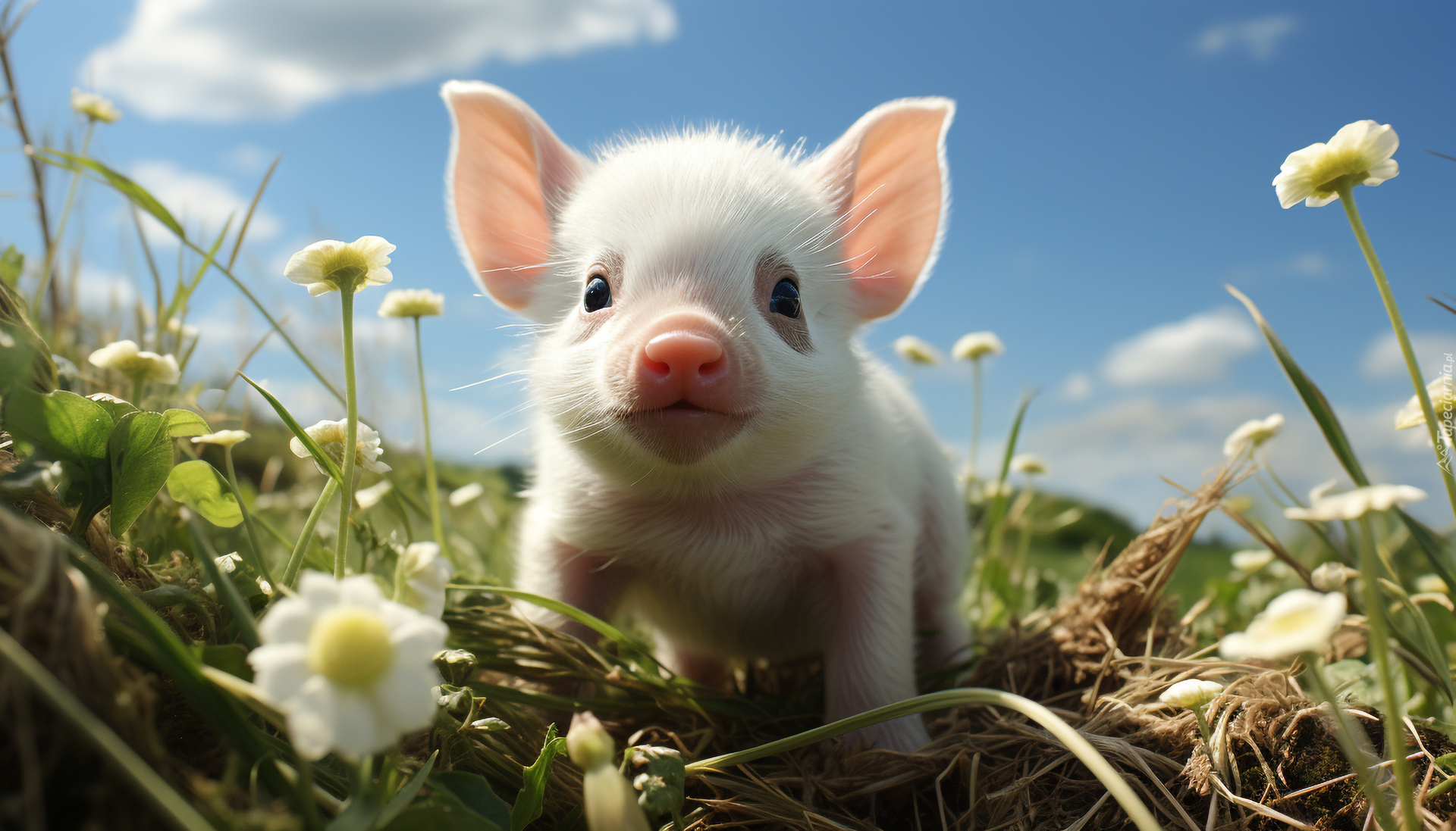 Edytor tapety: Świnka wśród kwiatów w 2D