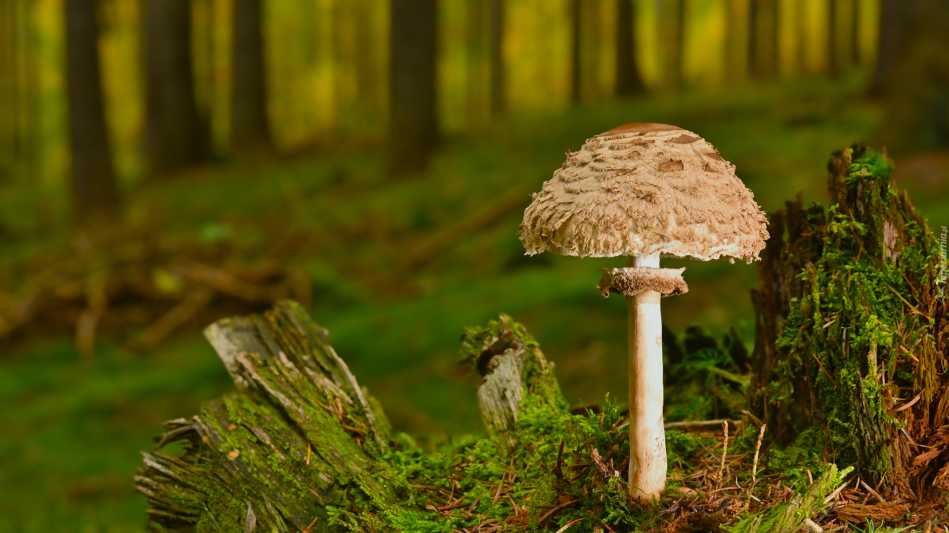 Edytor tapety: Grzyb na ściółce leśnej w lesie