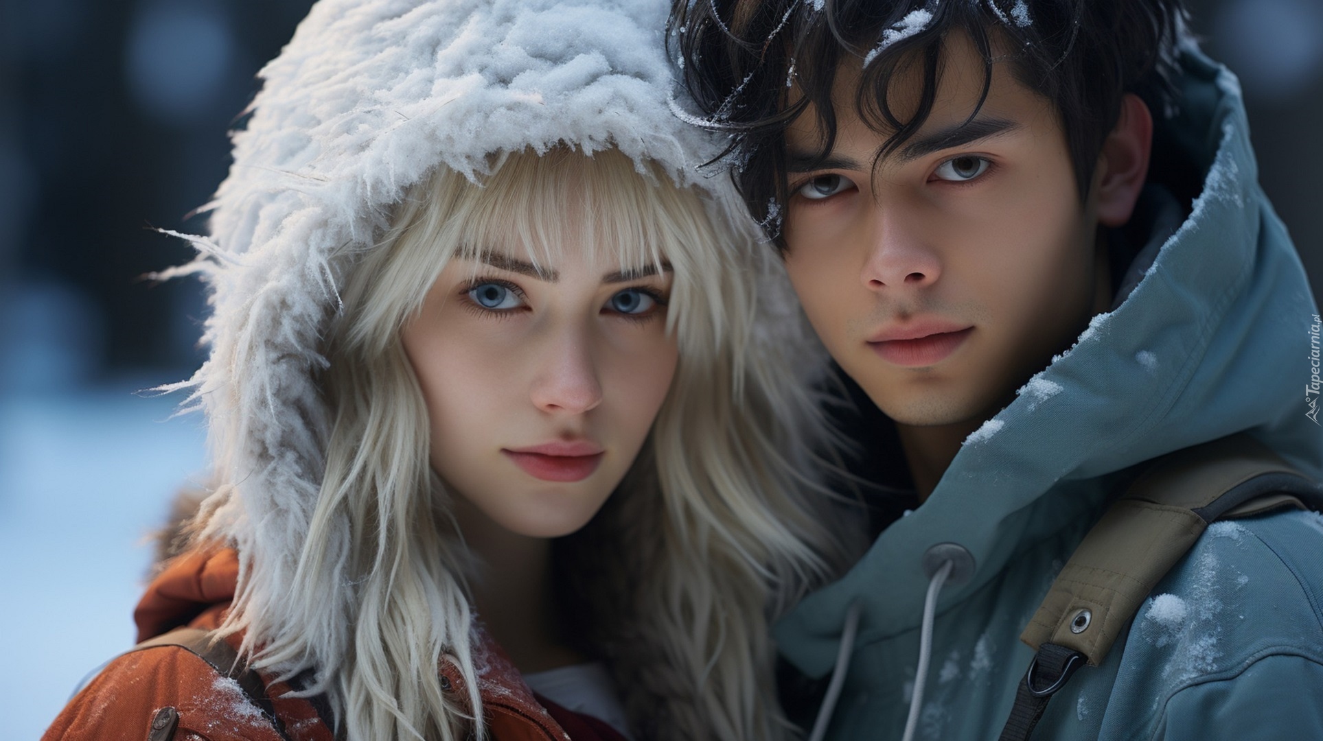 Edytor tapety: Chłopak z dziewczyną w zimowych ubraniach
