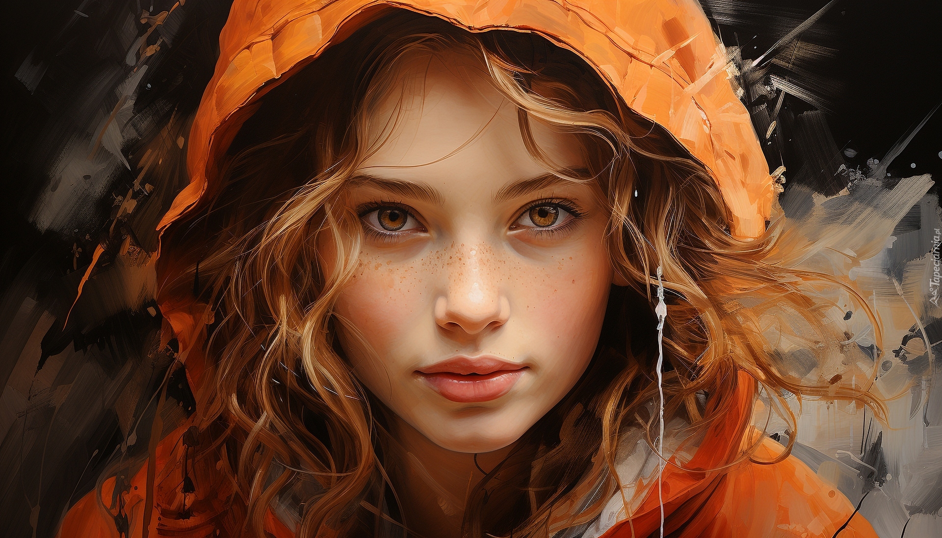 Edytor tapety: Dziewczyna w pomarańczowym kapturze