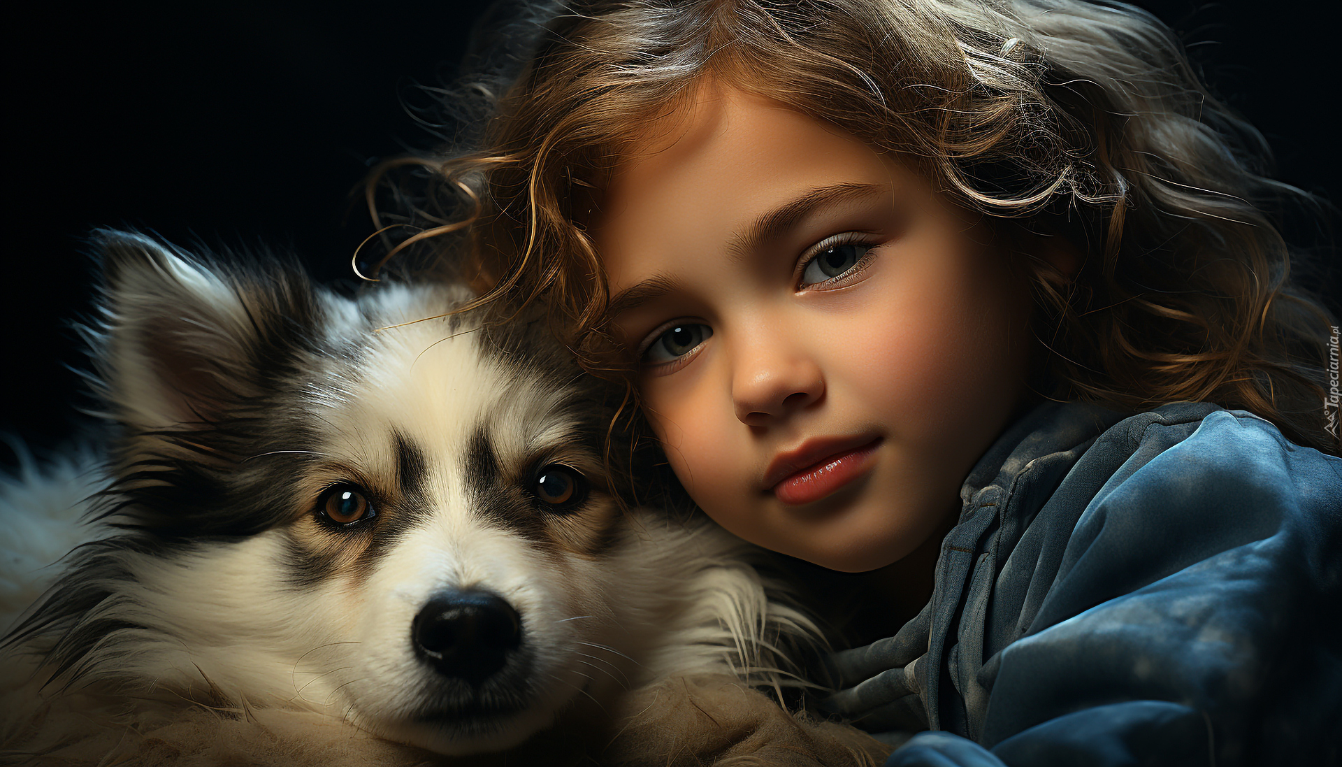 Edytor tapety: Uśmiechnięta dziewczynka przytulona do psa