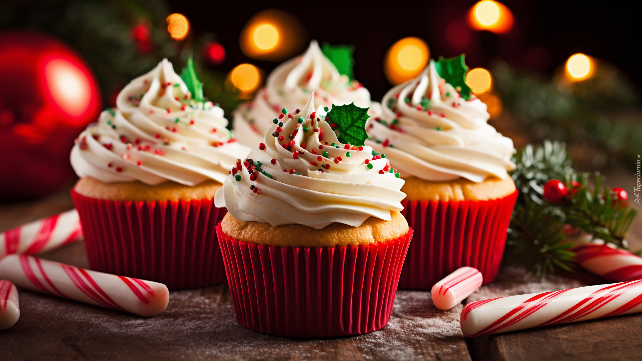 Edytor tapety: Babeczki z kremem i lizakami obok na stole