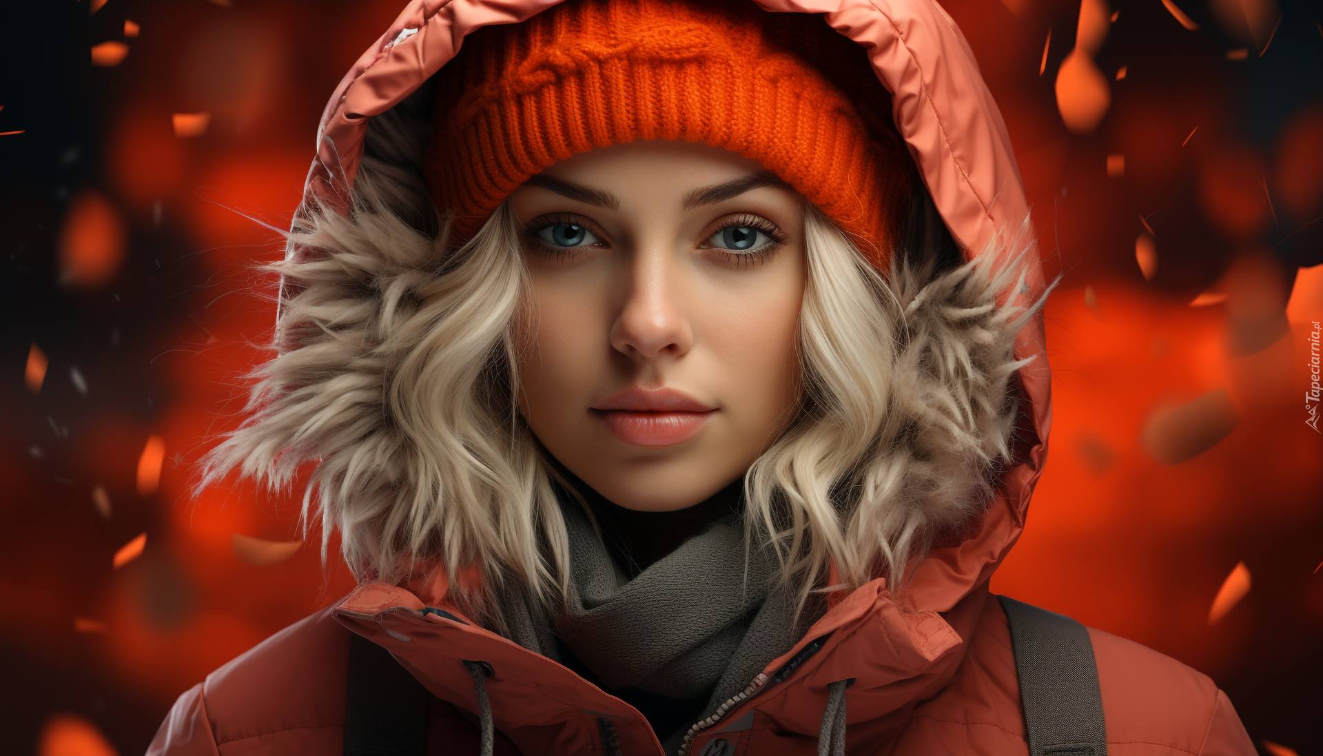 Edytor tapety: Kobieta w czapce i w kurtce z kapturem