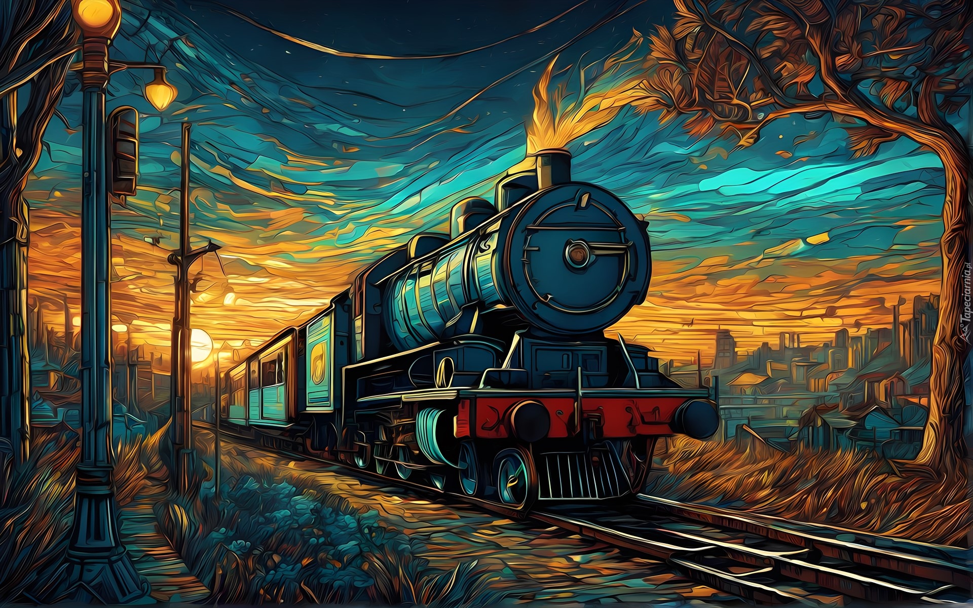 Edytor tapety: Pociąg parowy w kolorowej grafice