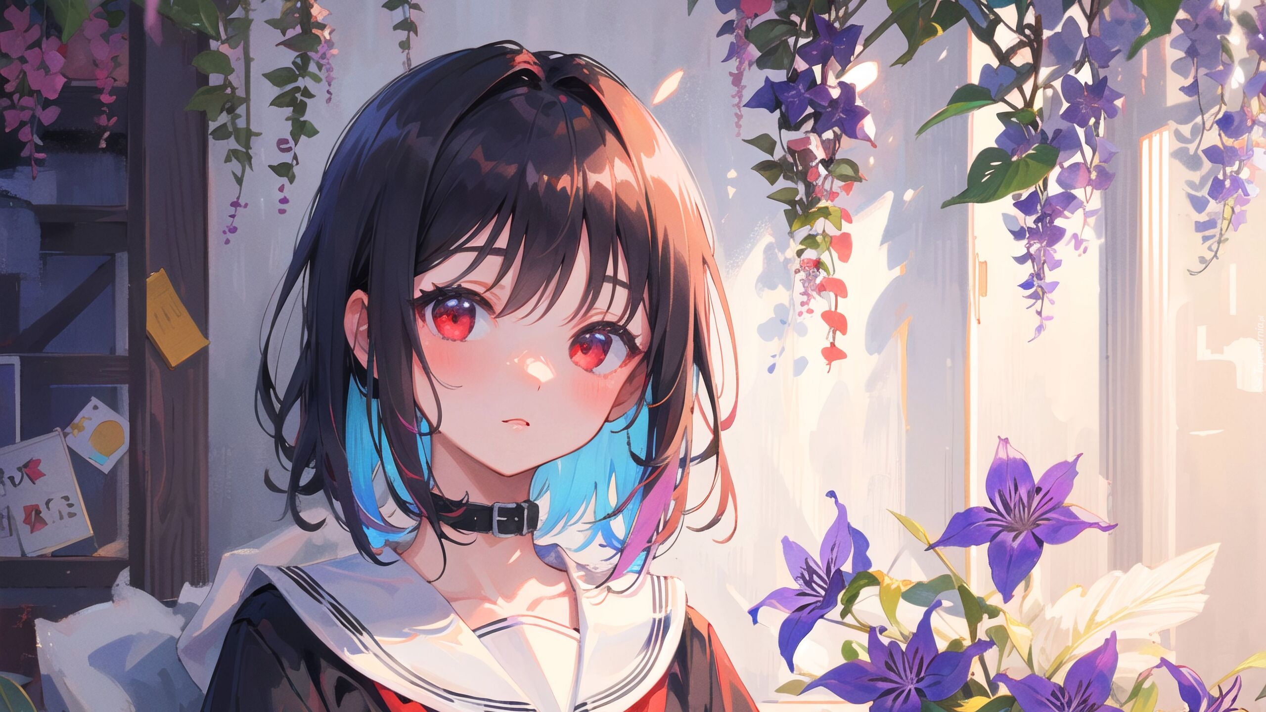 Edytor tapety: Dziewczyna w mundurku przy oknie w anime