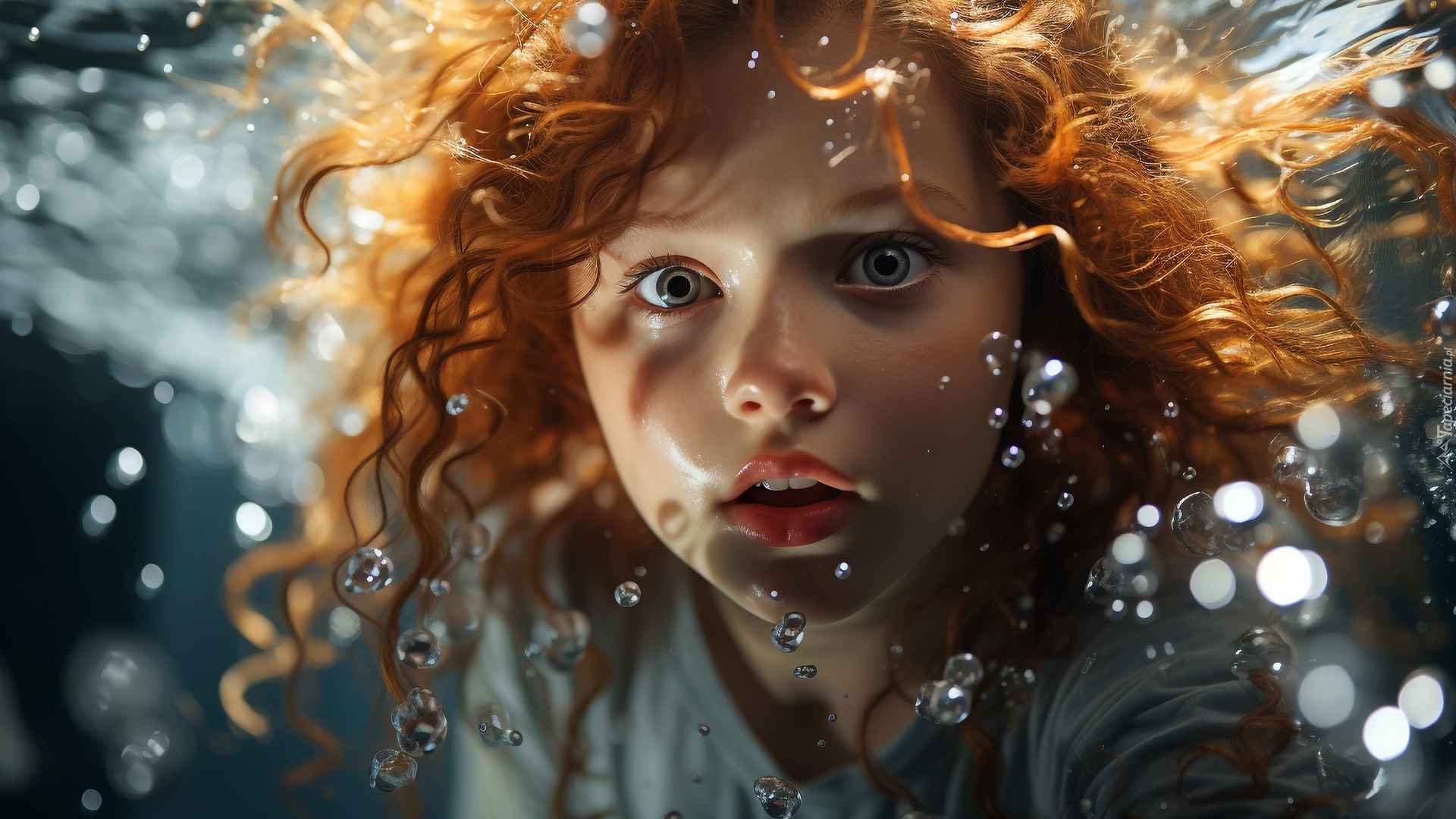 Edytor tapety: Rudowłosa dziewczynka wśród kropel wody
