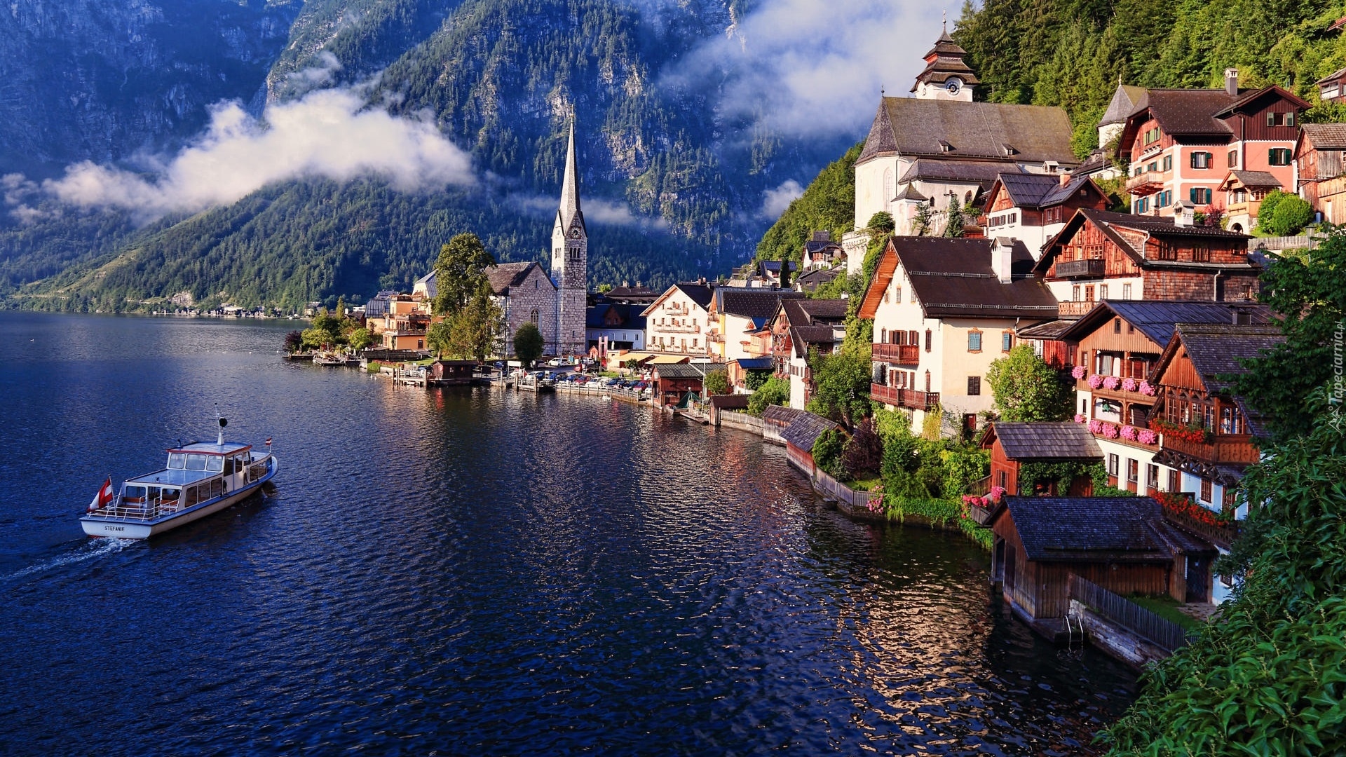 Edytor tapety: Domy na wzgórzu nad jeziorem Hallstattersee w Hallstatt