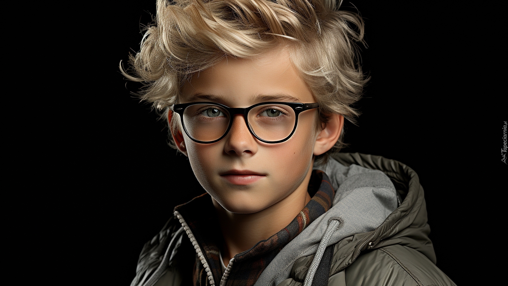 Edytor tapety: Chłopiec w kurtce i okularach