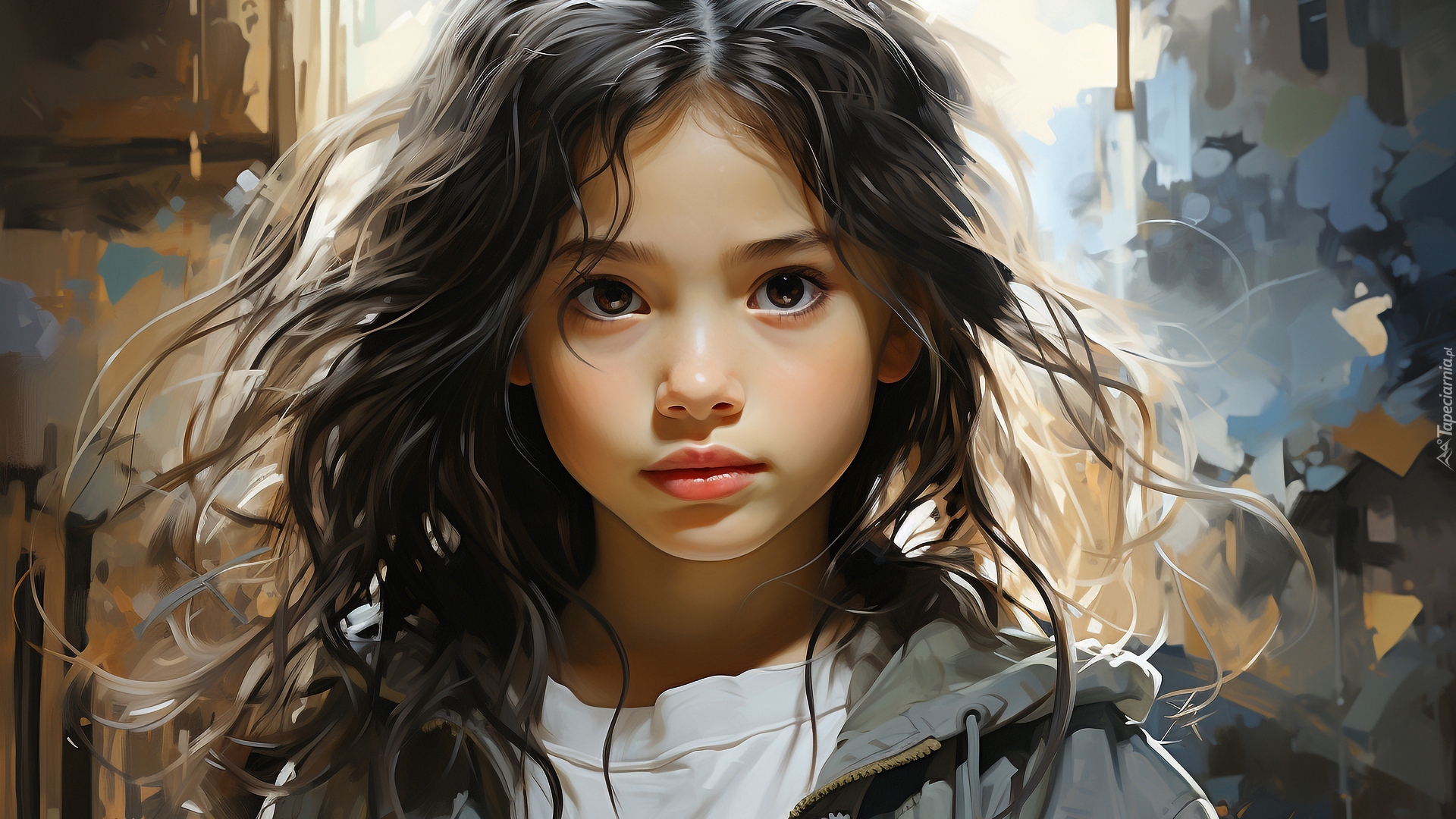 Edytor tapety: Dziewczynka z długimi włosami w grafice