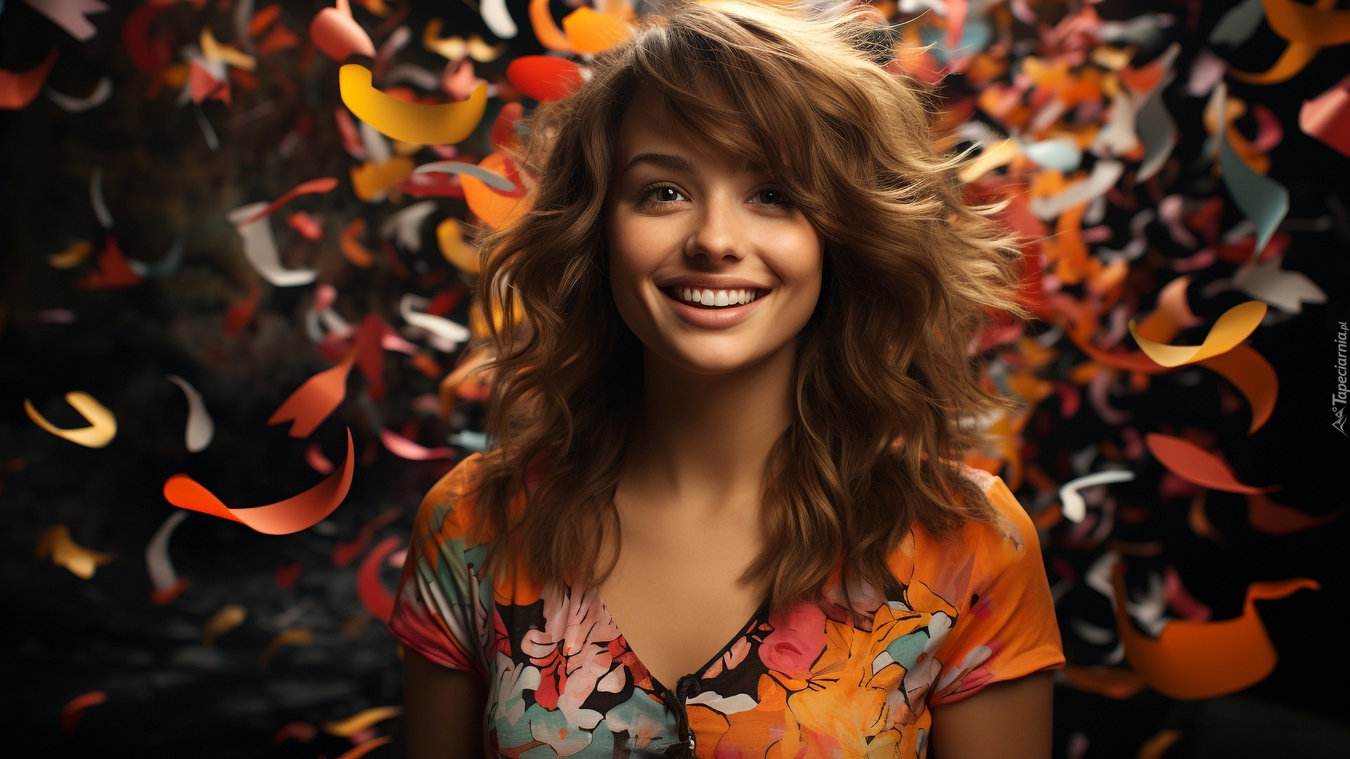 Edytor tapety: Uśmiechnięta kobieta na kolorowym tle