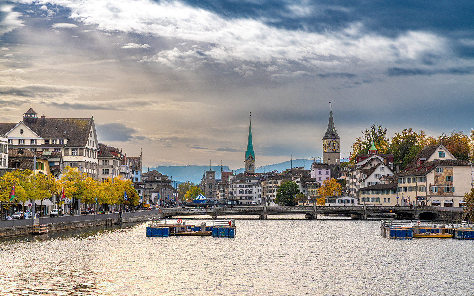 Edytor tapety: Domy i most nad rzeką Limmat w Zurychu