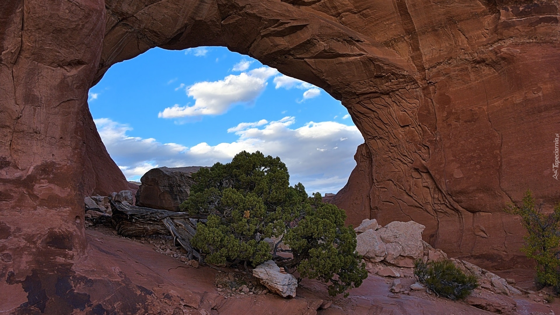 Edytor tapety: Krzewy na tle skały w Parku Narodowym Arches