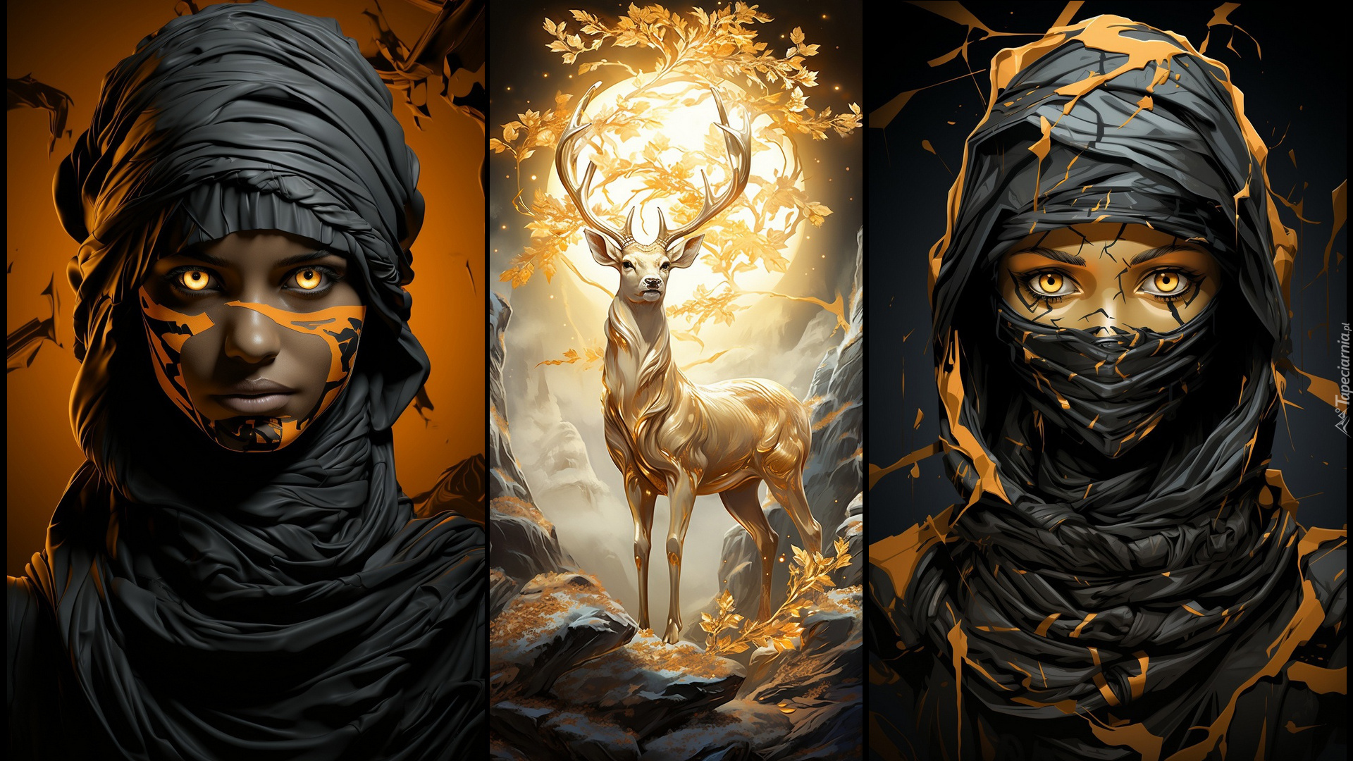 Edytor tapety: Twarze dwóch kobiet i jeleń
