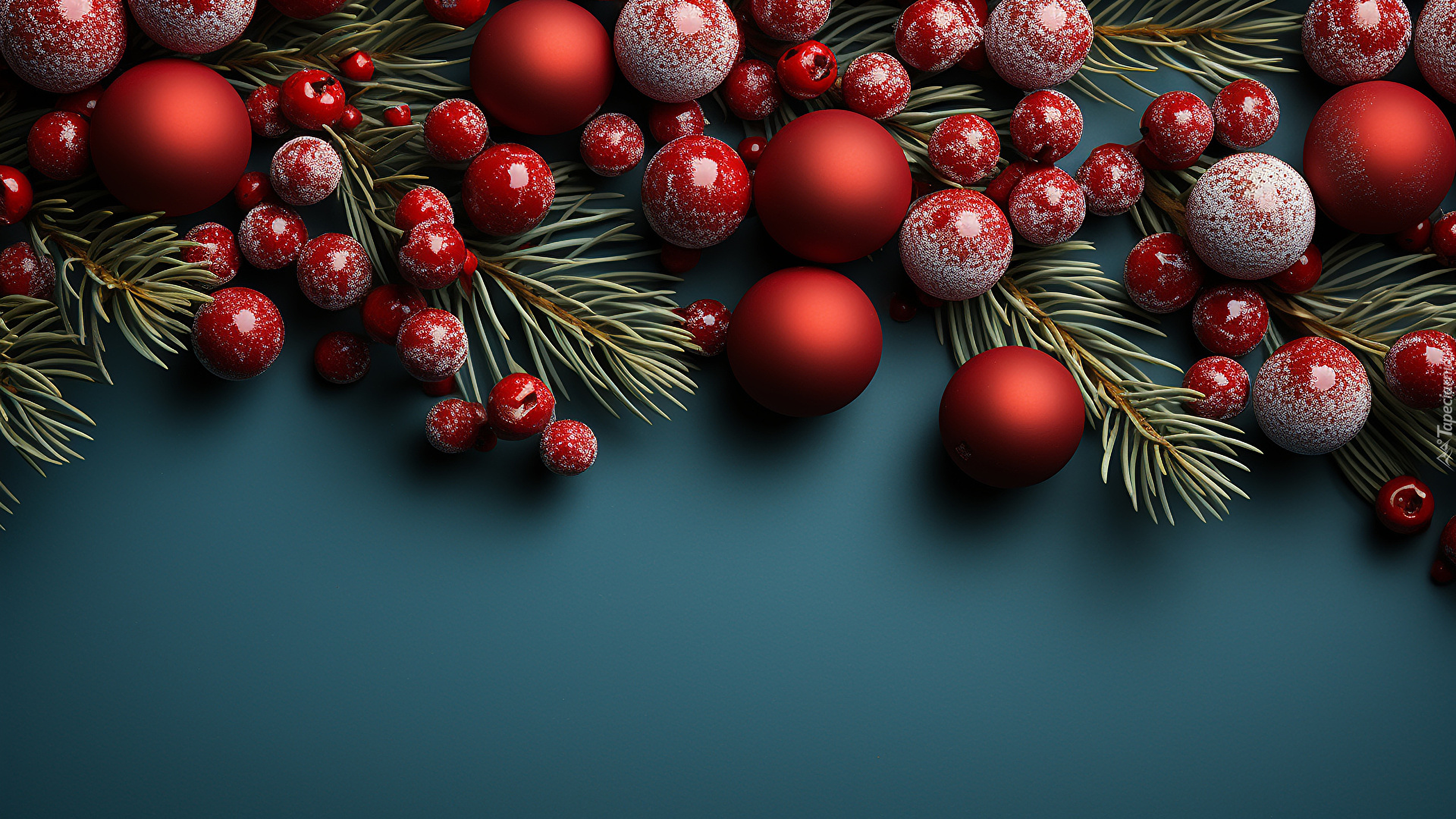 Edytor tapety: Czerwone bombki na świerkowych gałązkach