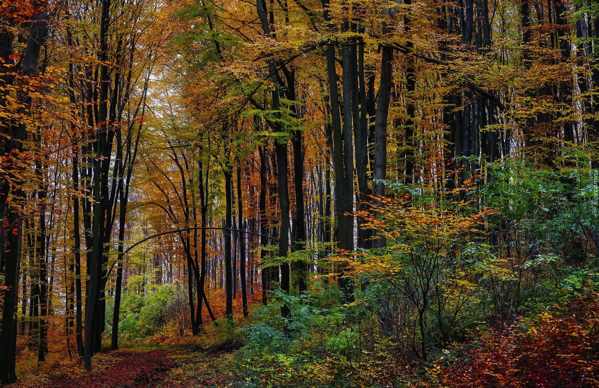 Edytor tapety: Kolorowe drzewa w lesie jesienią