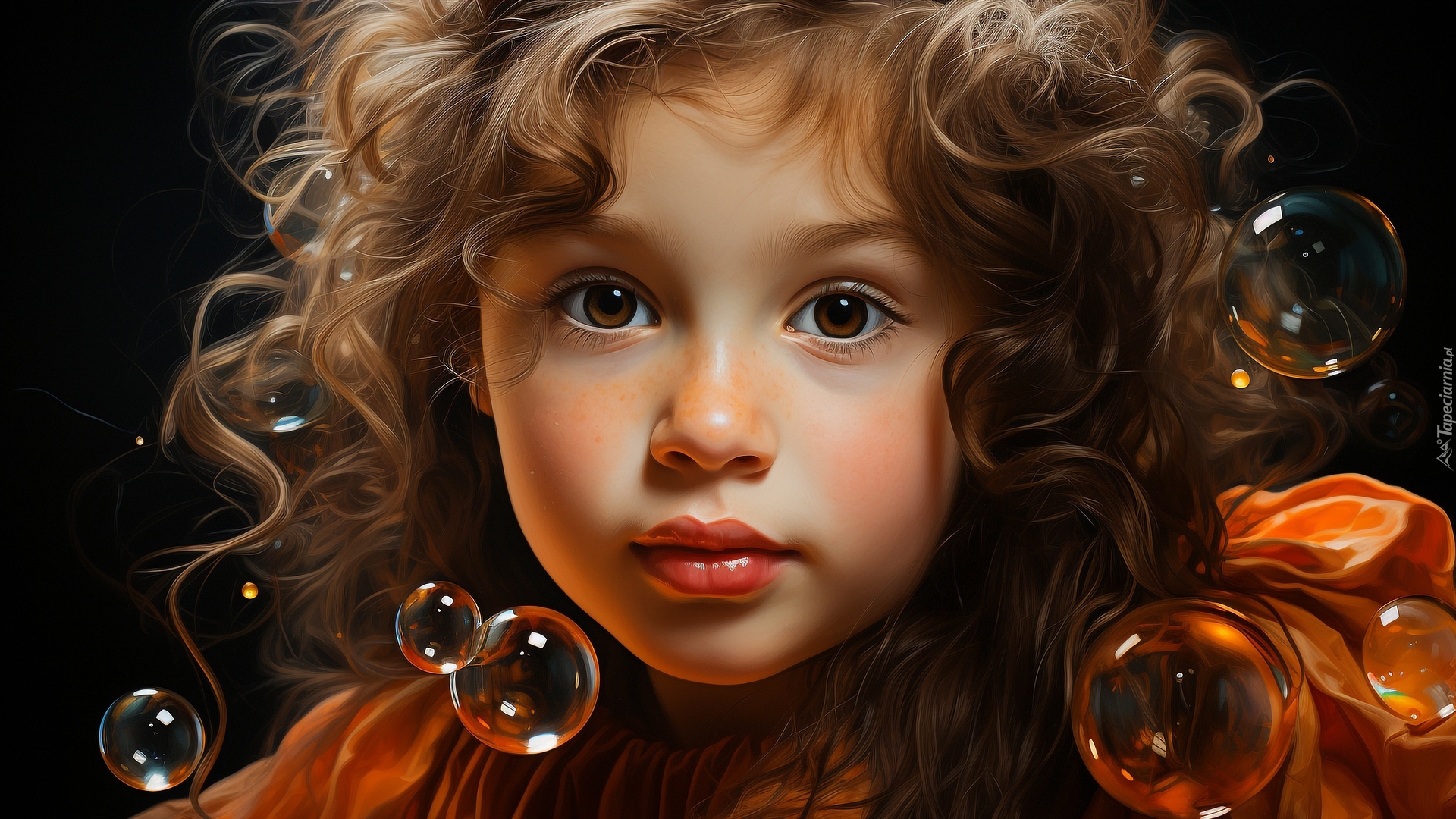 Edytor tapety: Dziewczynka z kręconymi włosami i bańki mydlane