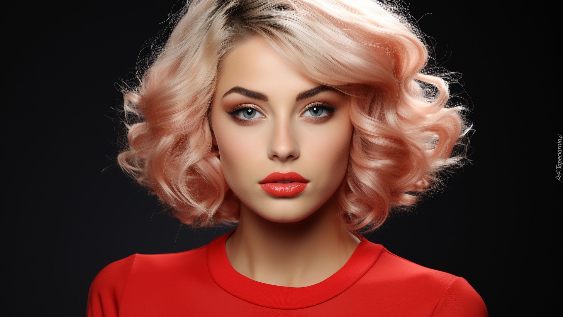 Edytor tapety: Kobieta w czerwonej bluzce na czarnym tle