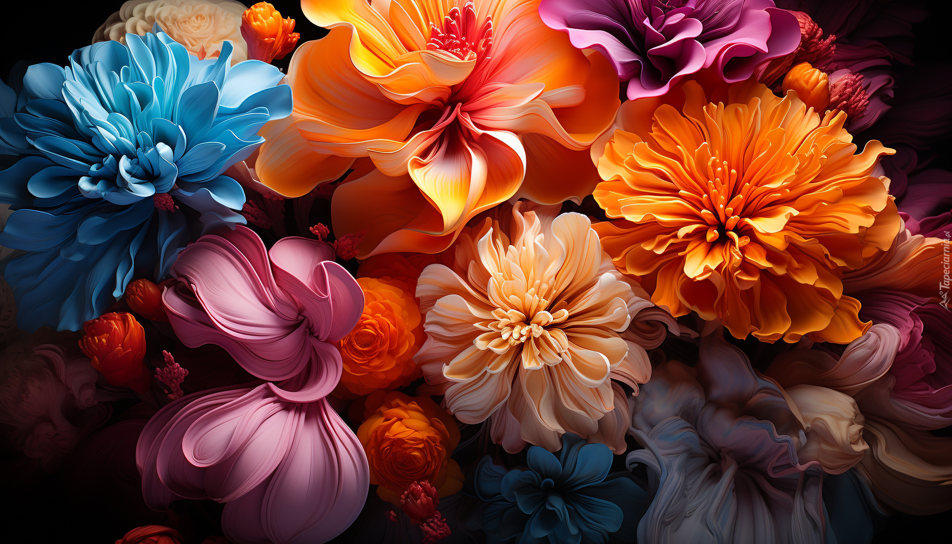 Edytor tapety: Różne rozświetlone kolorowe kwiaty w 2D