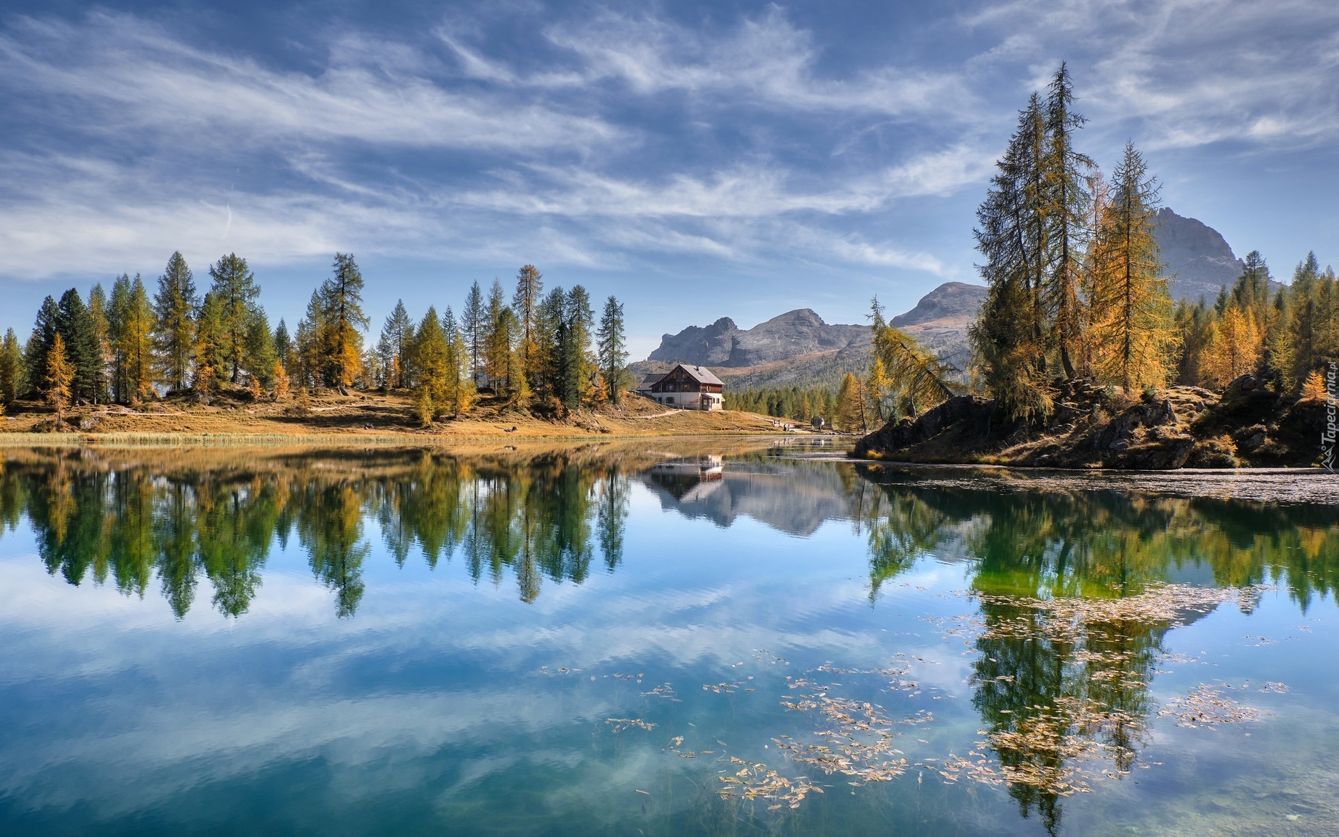 Edytor tapety: Schronisko nad jeziorem Federa we włoskich Dolomitach