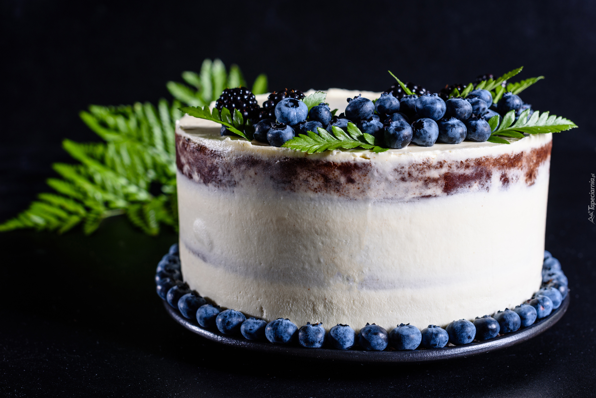 Edytor tapety: Ciasto ze śmietaną i borówkami