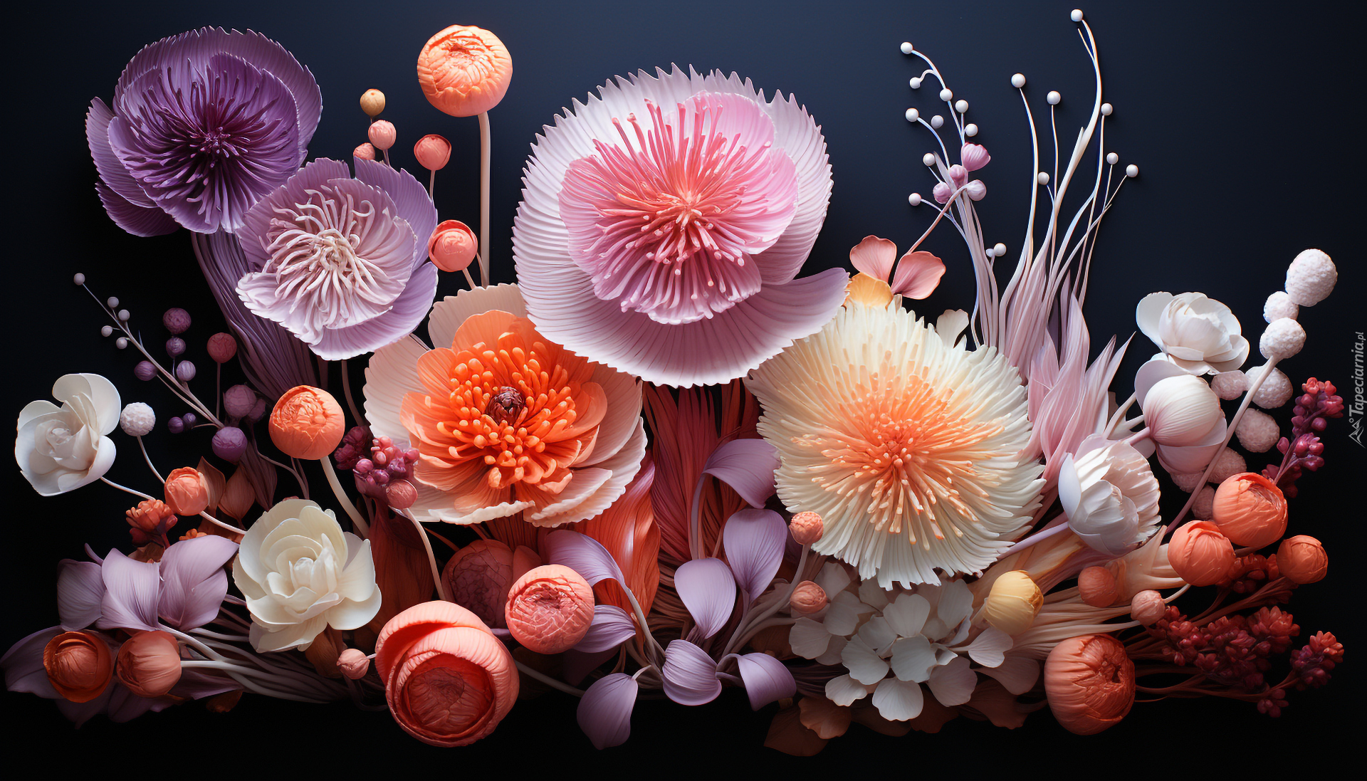 Edytor tapety: Rozświetlone kolorowe kwiaty na granatowym tle