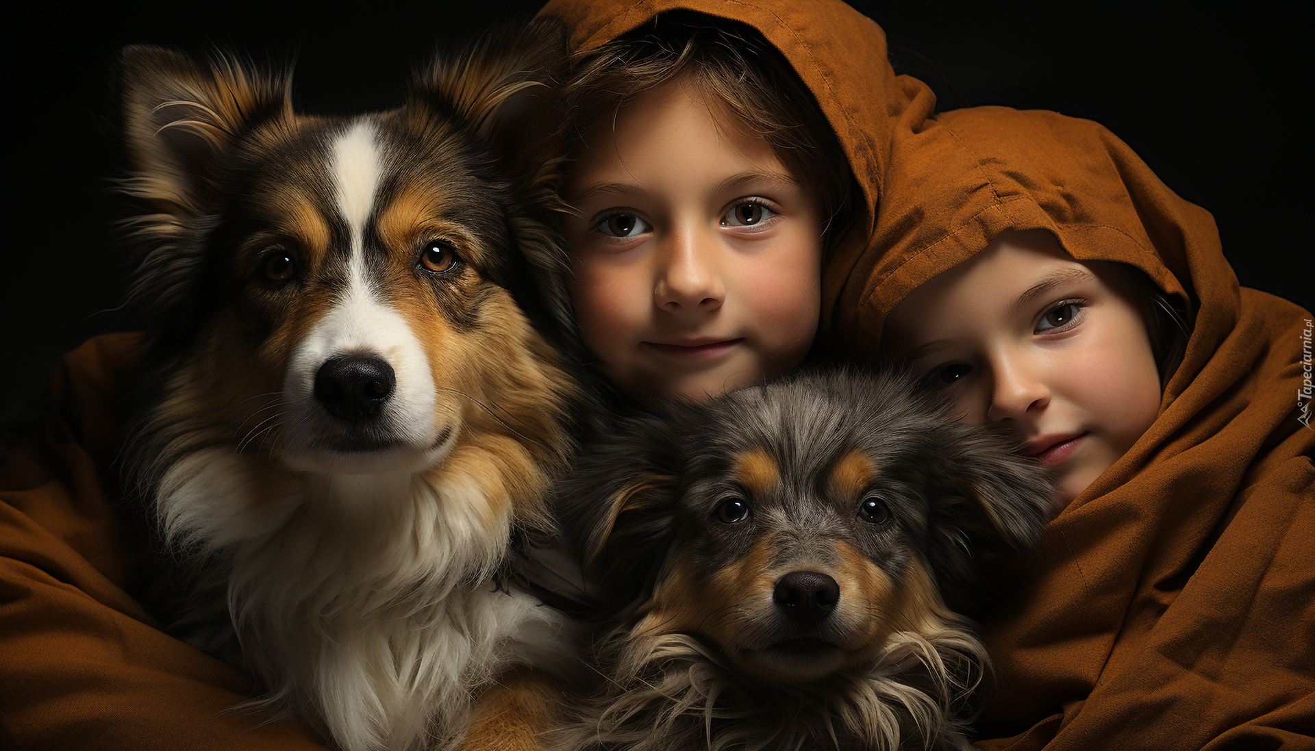 Edytor tapety: Dwoje dzieci z dwoma psami