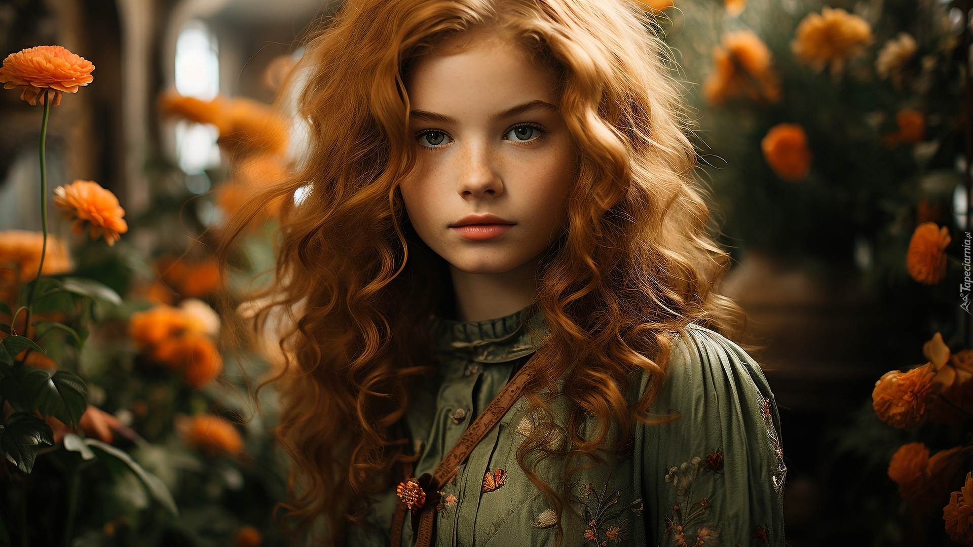 Edytor tapety: Rudowłosa dziewczyna w zielonej bluzce