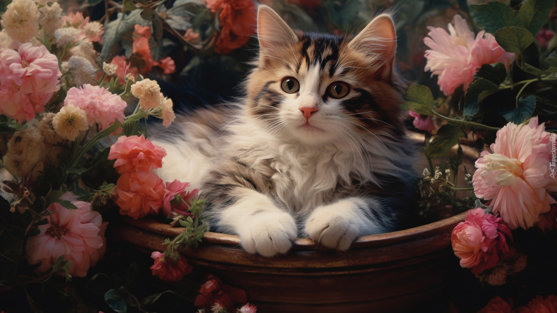 Edytor tapety: Kot leżący w donicy