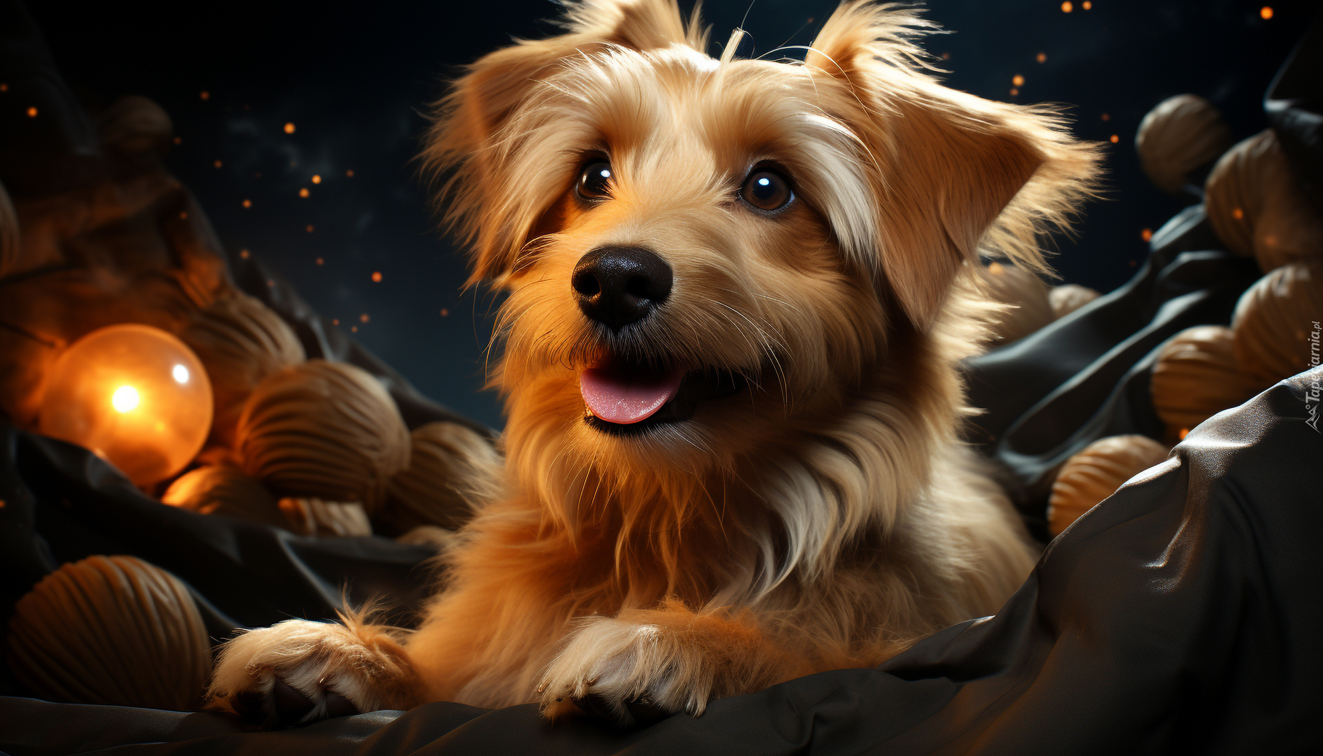 Edytor tapety: Leżący pies z wystawionym językiem