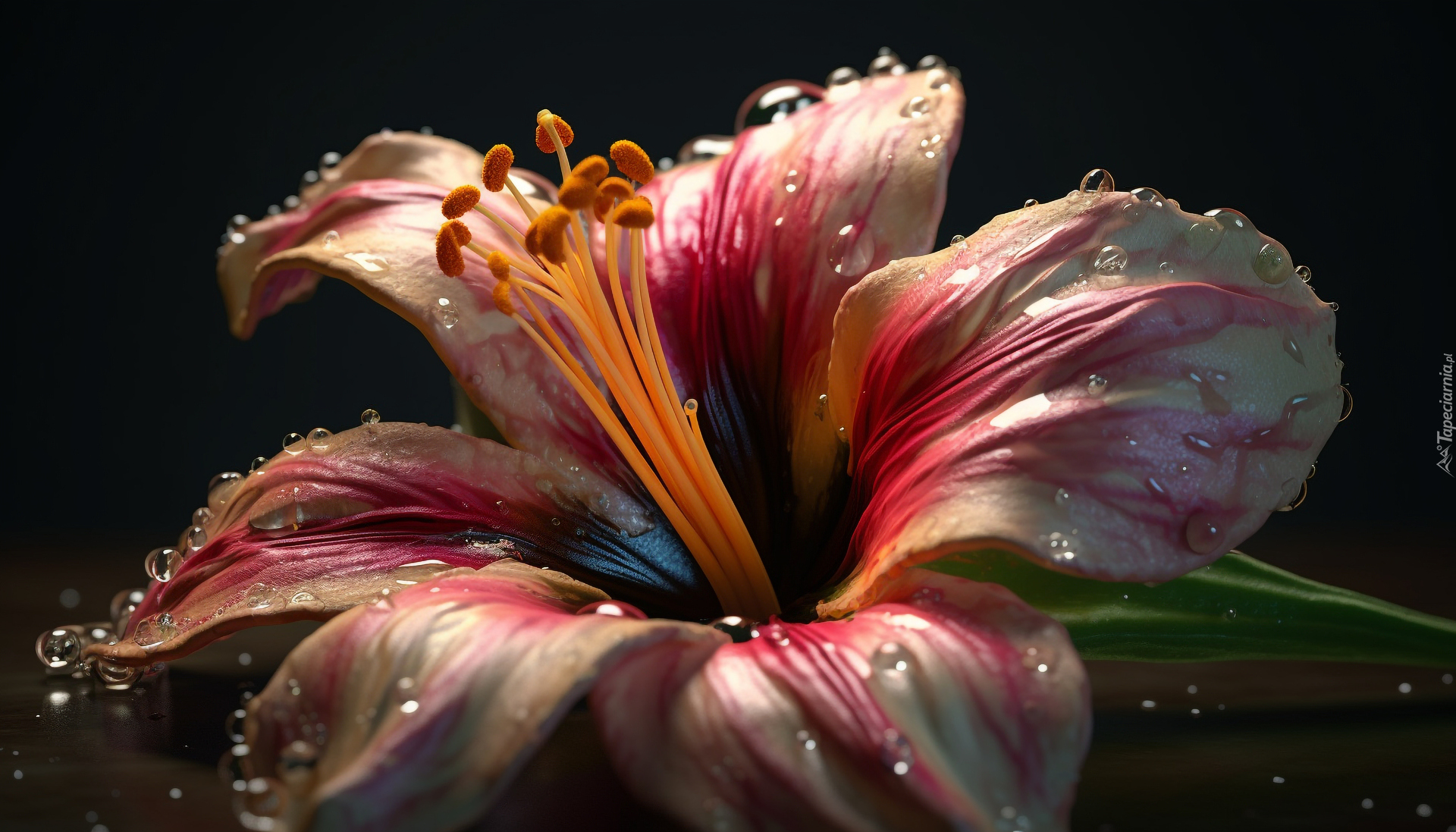 Edytor tapety: Mokry rozwinięty kwiat w grafice