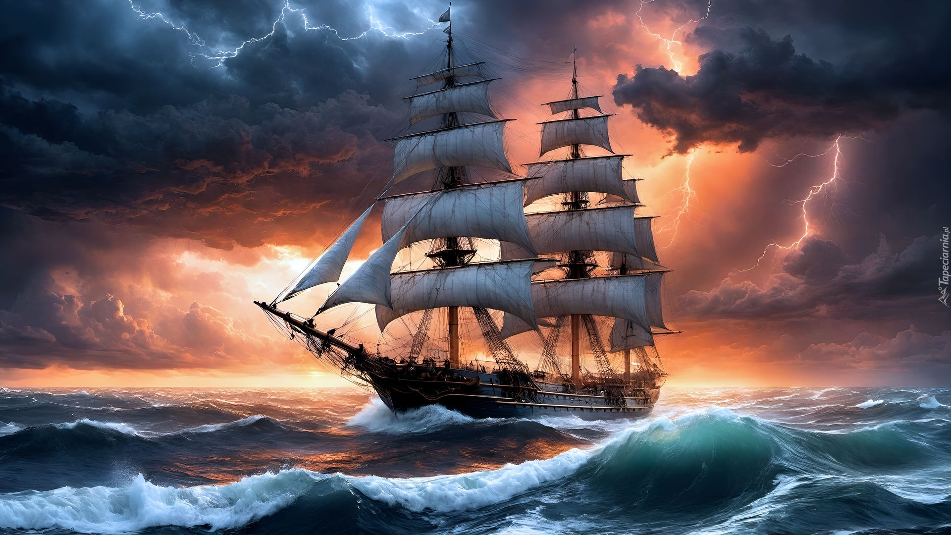 Edytor tapety: Żaglowiec na wzburzonym morzu