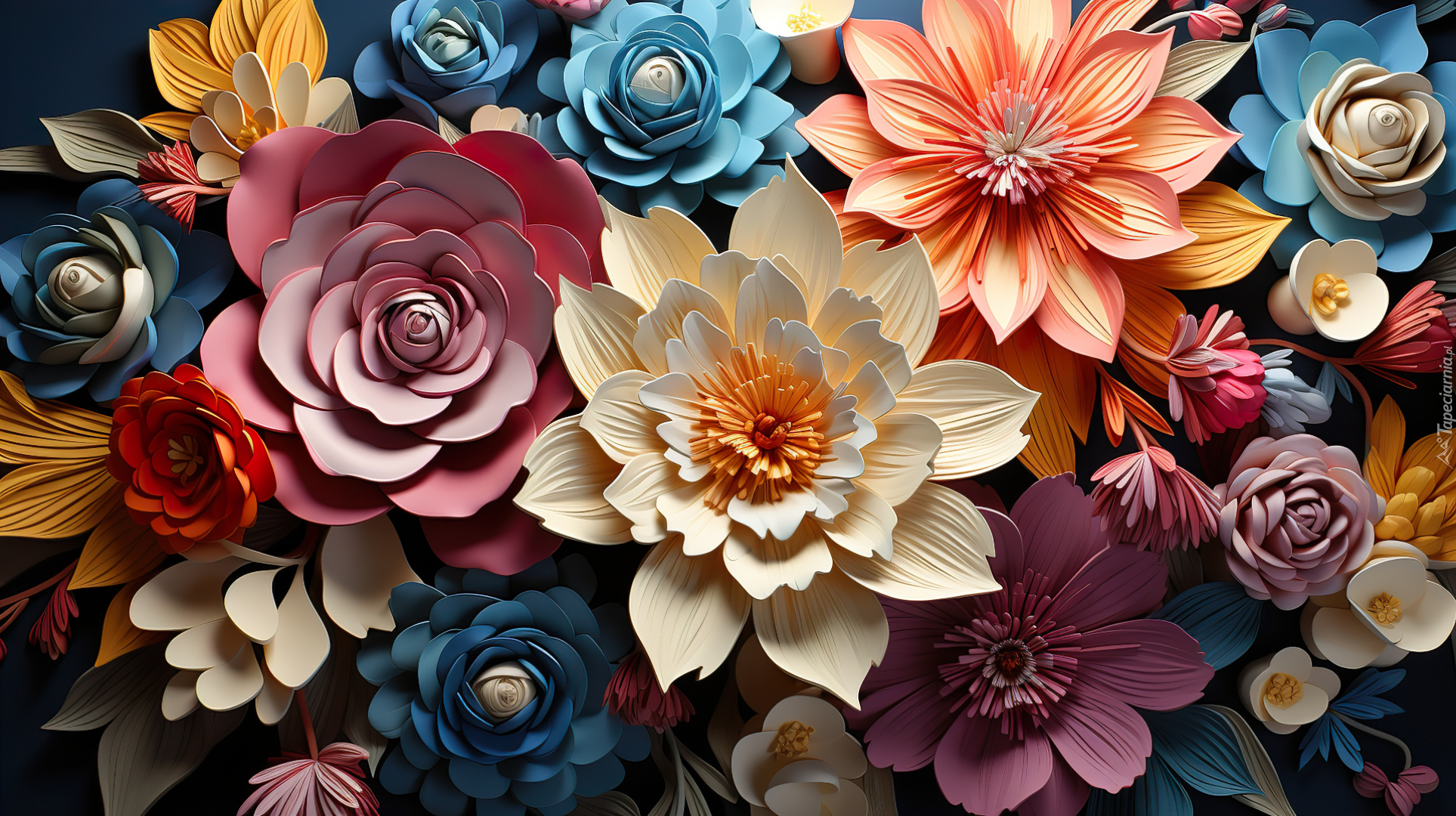 Edytor tapety: Promienne kolorowe kwiaty w grafice 2D