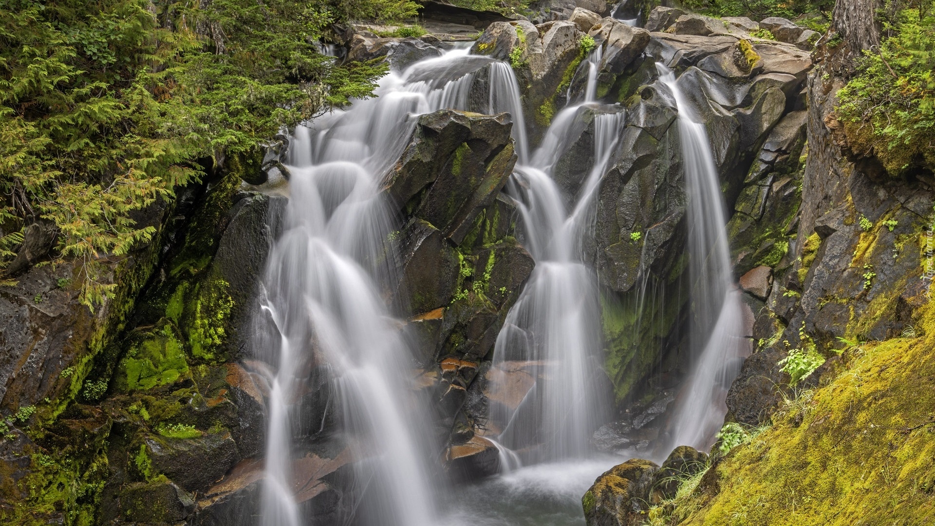 Edytor tapety: Spadek rzeki Paradise River na skale