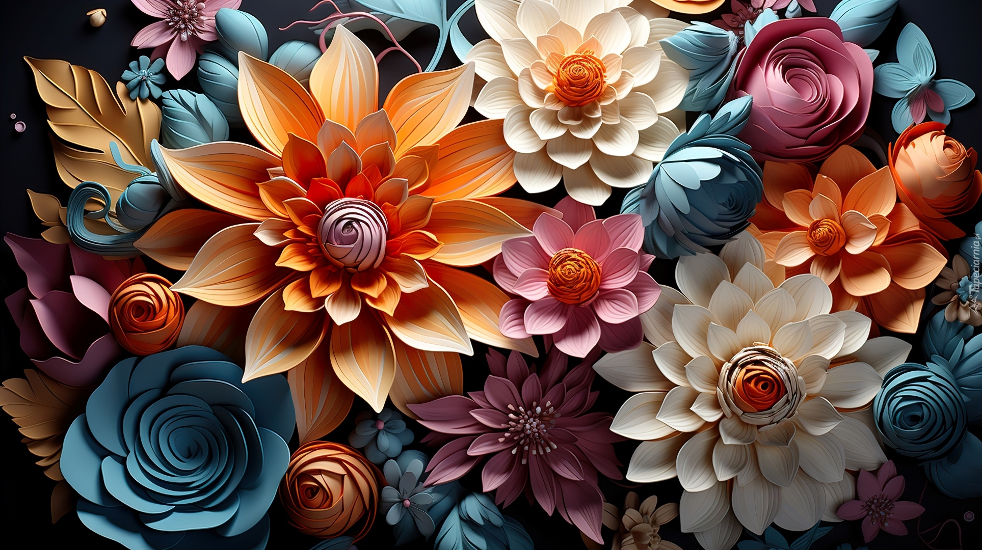 Edytor tapety: Grafika rozwiniętych kolorowych kwiatów
