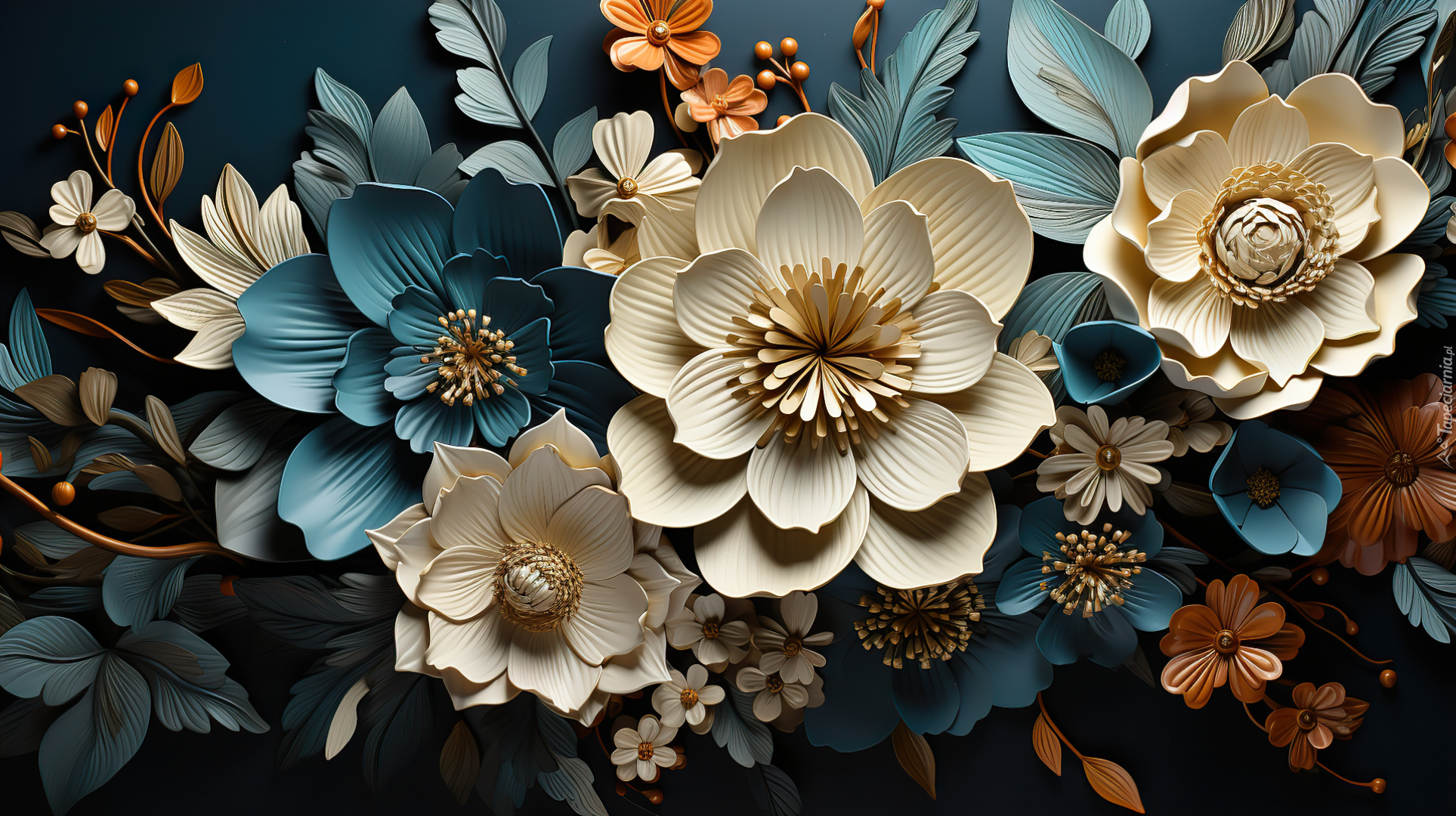 Edytor tapety: Kwiaty wśród kolorowych liści w grafice 2D