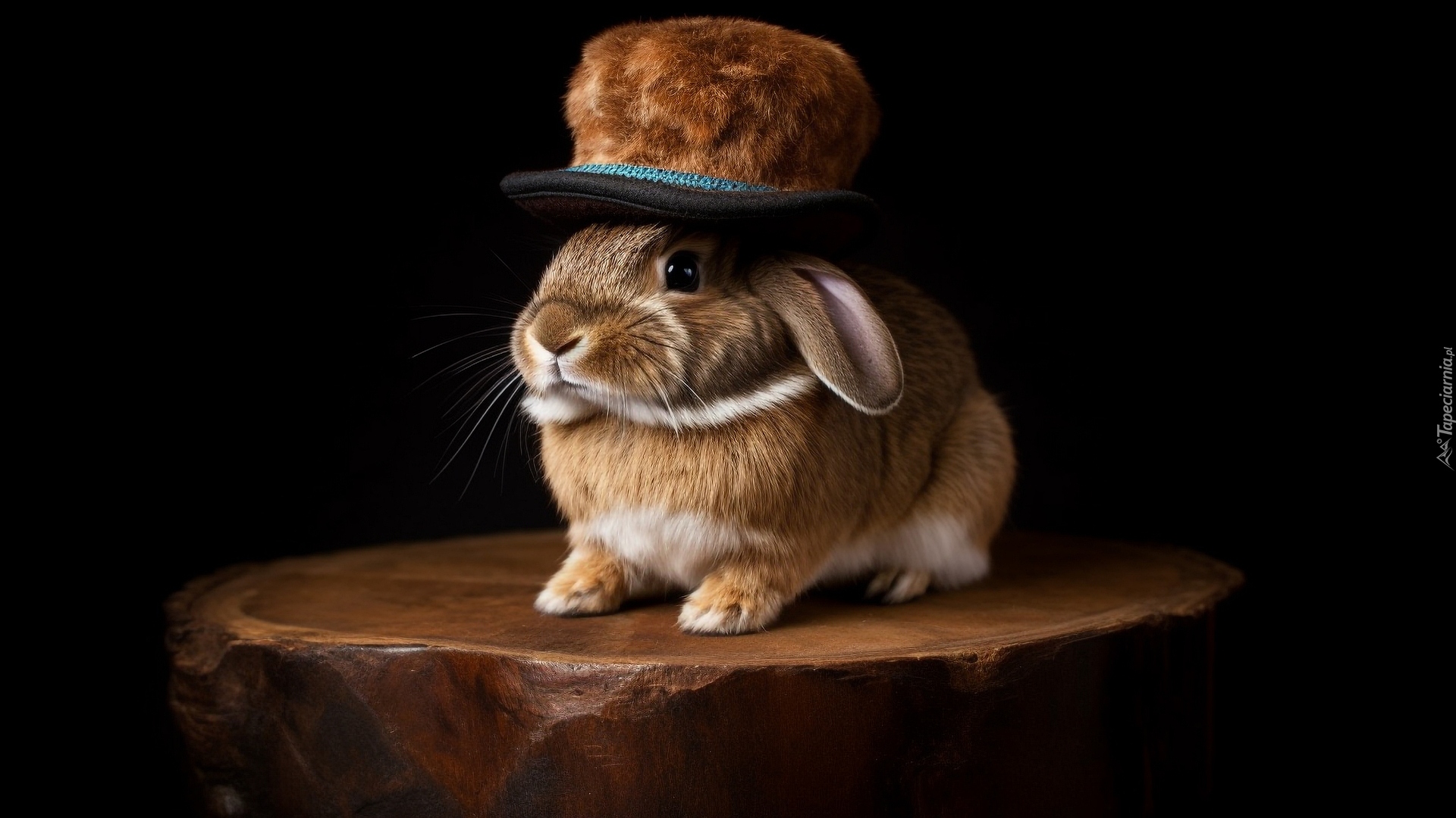 Edytor tapety: Królik w futrzanej czapce na czarnym tle