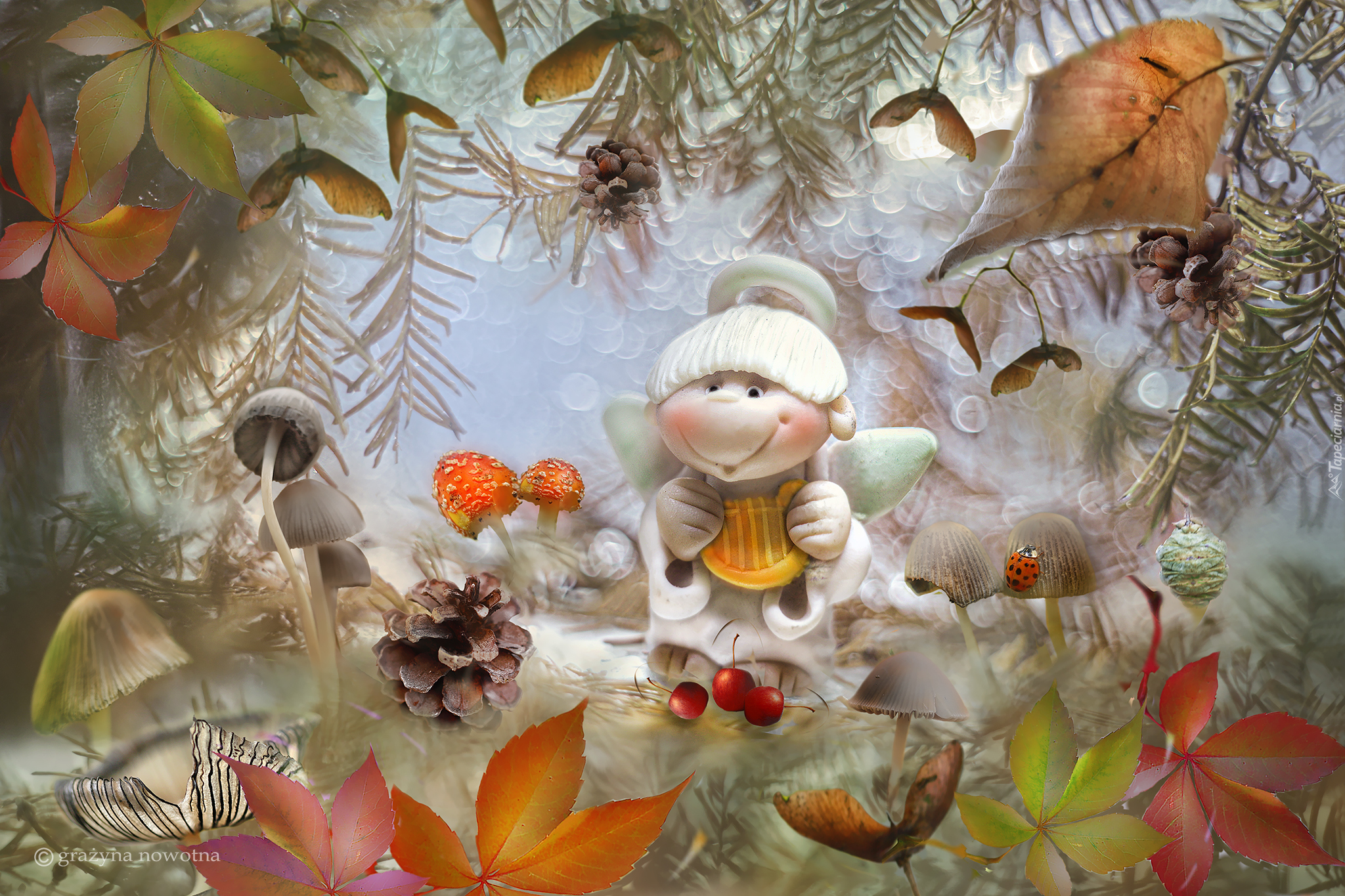 Edytor tapety: Aniołek wśród jesiennych darów jesieni