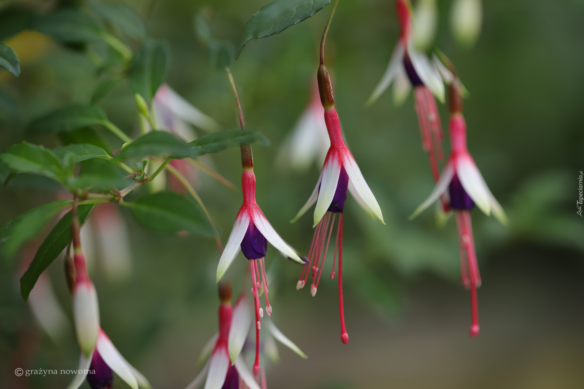 Edytor tapety: Kwiatki fuksji na gałązce