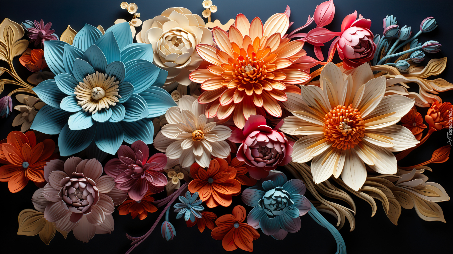 Edytor tapety: Kwiaty z pąkami na ciemnym tle w grafice