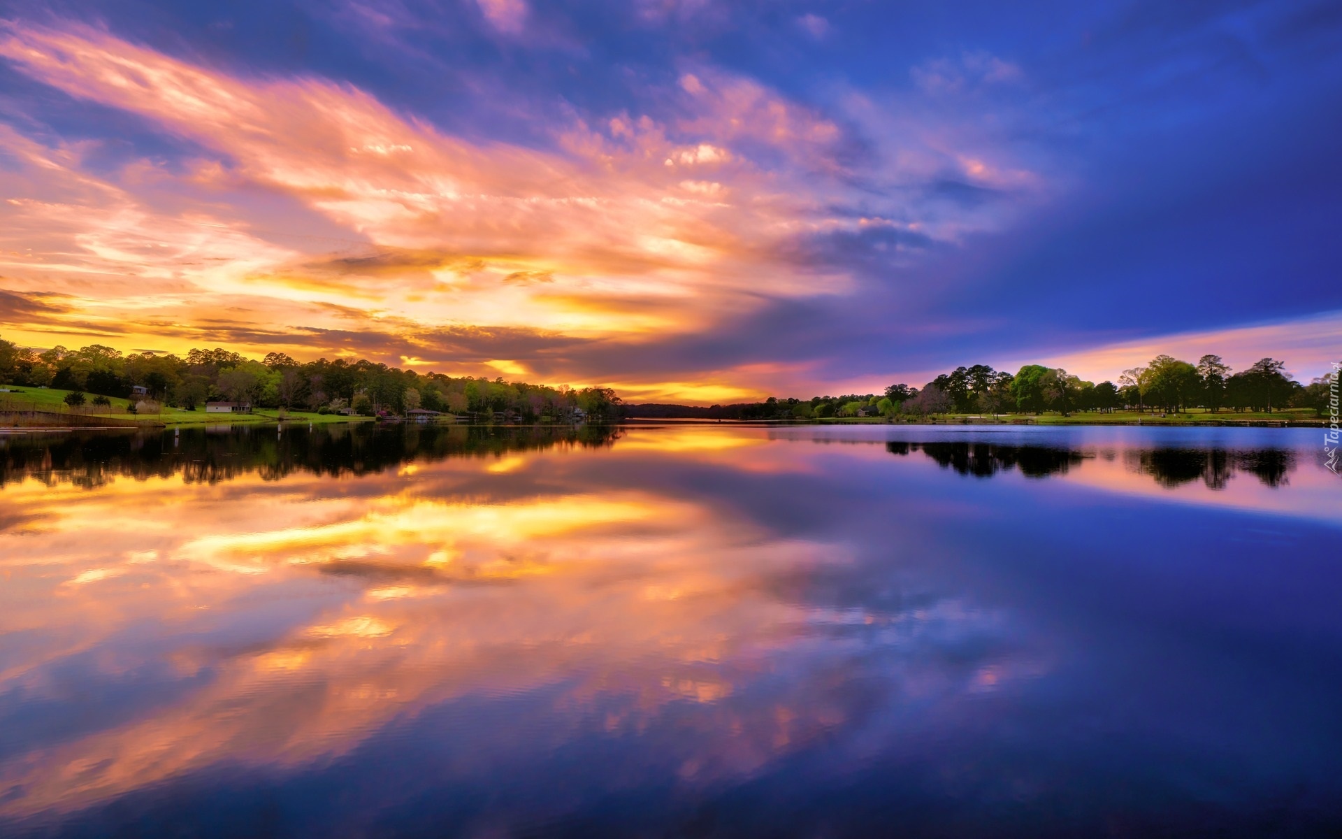 Edytor tapety: Lake Houston pod kolorowym niebem zachodzącego słońca