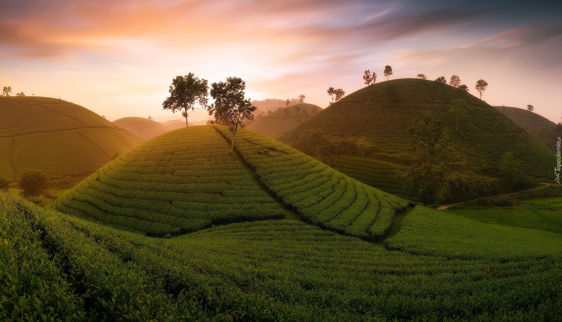 Edytor tapety: Drzewa i plantacje herbaty na wzgórzach