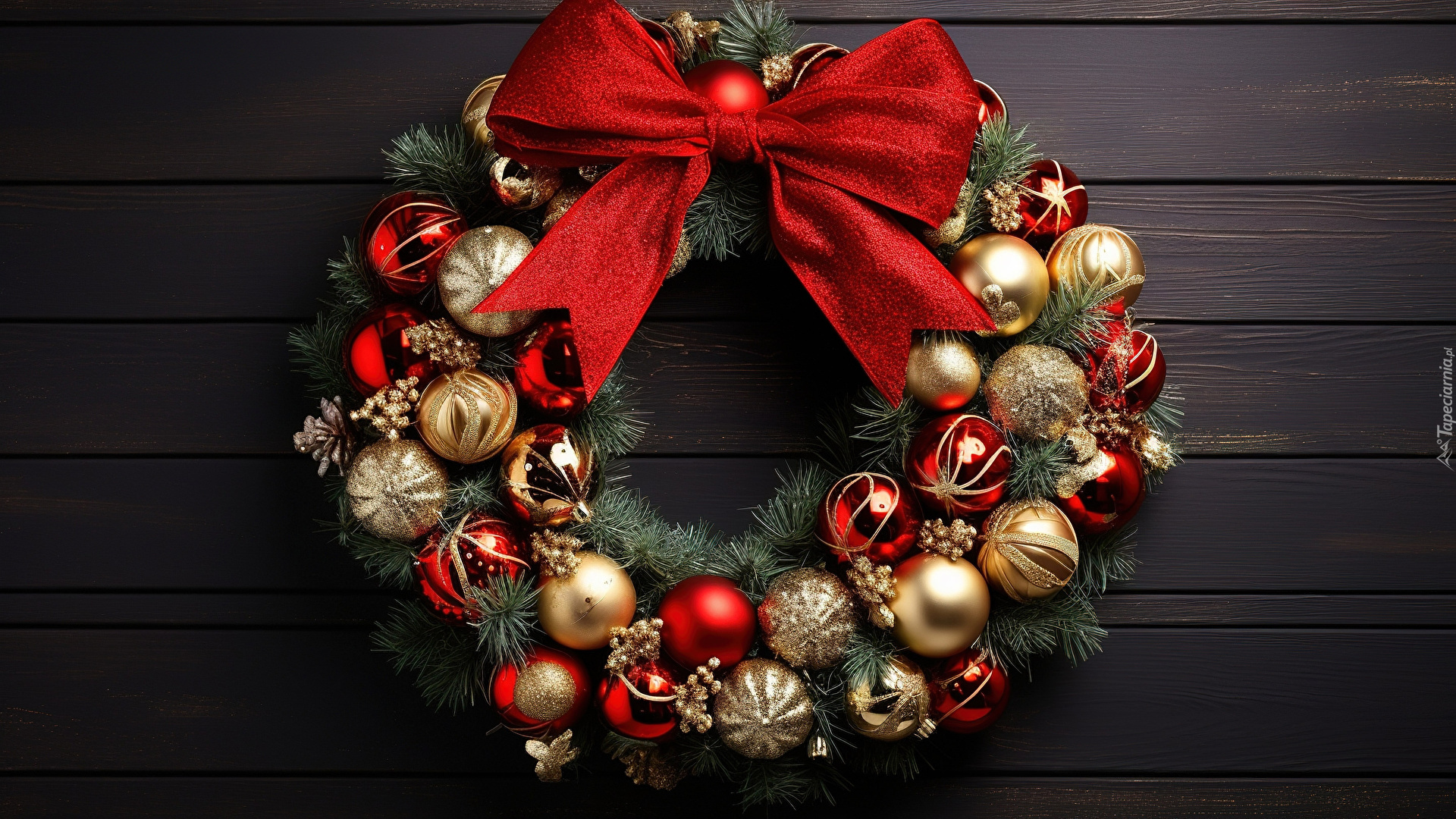 Edytor tapety: Ozdobny wieniec świąteczny na deskach