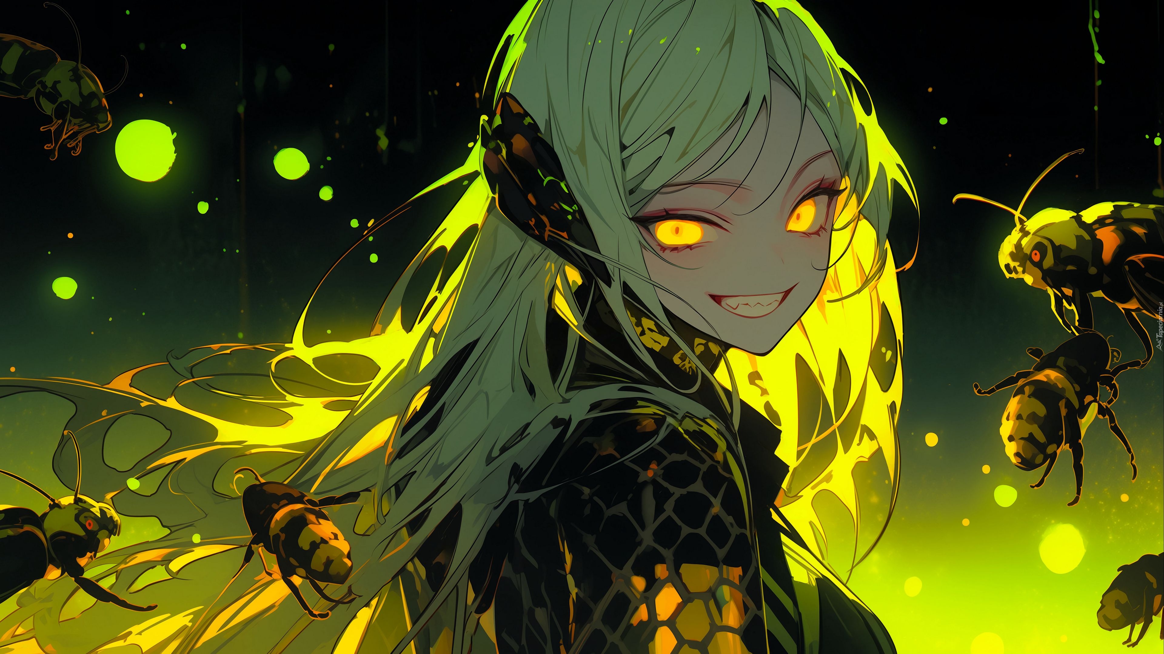 Edytor tapety: Długowłosa dziewczyna i pszczoły w anime