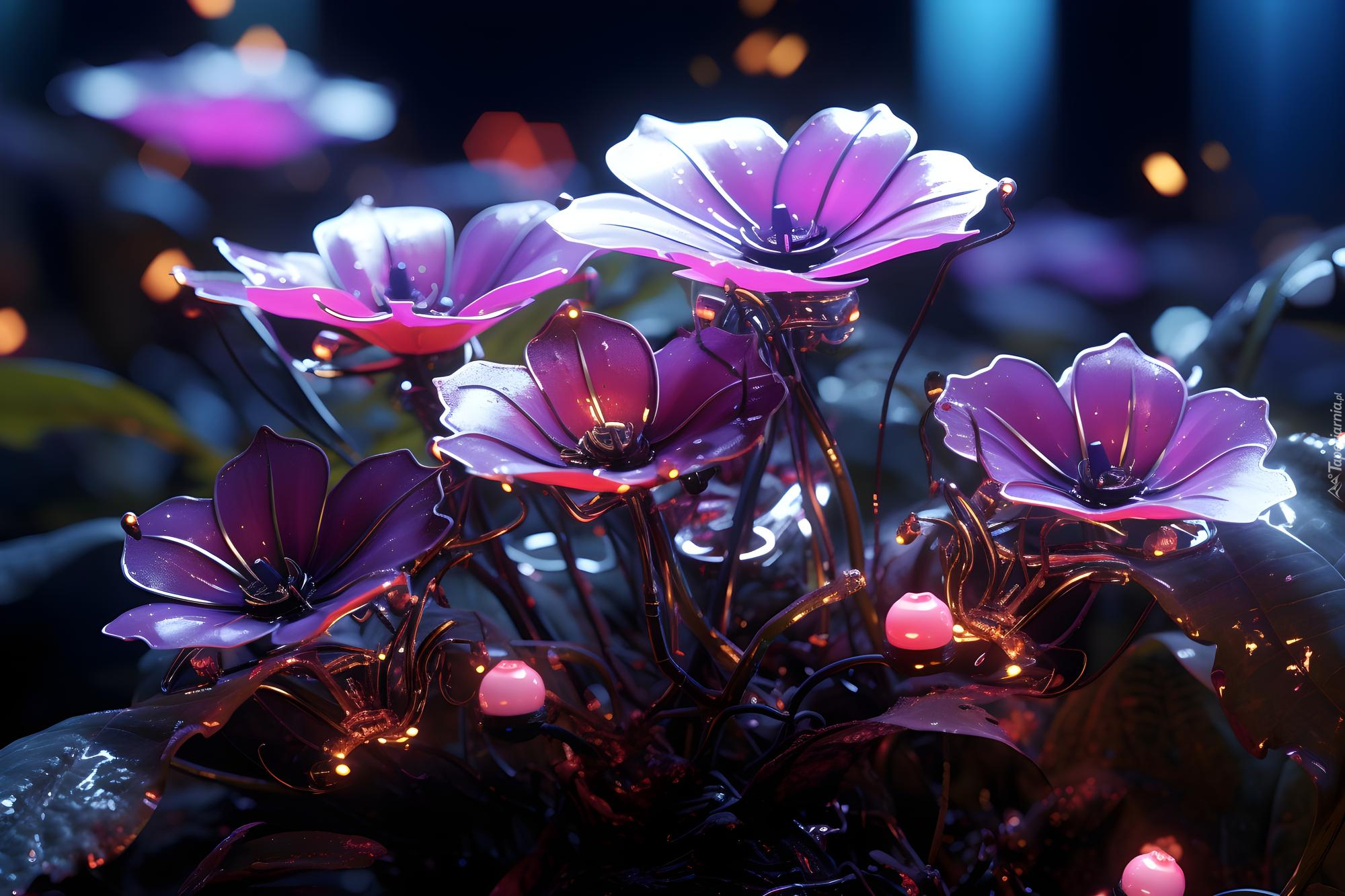 Edytor tapety: Rozświetlone różowe kwiatki w grafice